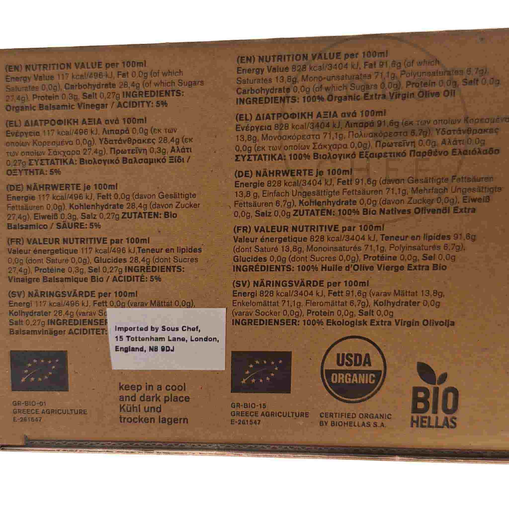Product formulations and details may change. For the latest ingredients and allergen information always check product packaging prior to consumption. Ingredients: Olive oil: 100% organic extra virgin oil. vinegar: 70% organic red grape vinegar, 30% organic red grape concentrated must