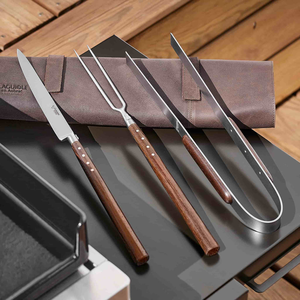 Laguiole en Aubrac BBQ Set with Leather Roll