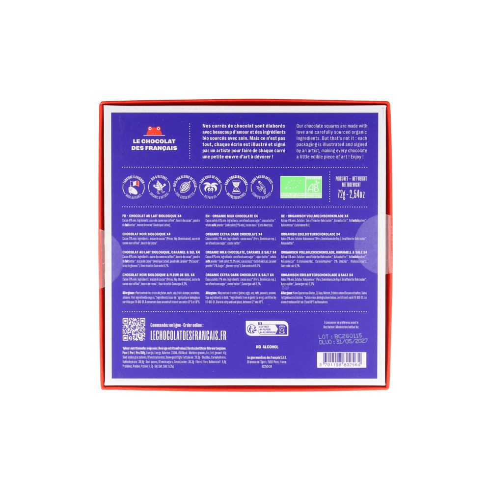 Le Chocolat des Francais 16 Piece Art Design Organic Chocolate Squares, 80g