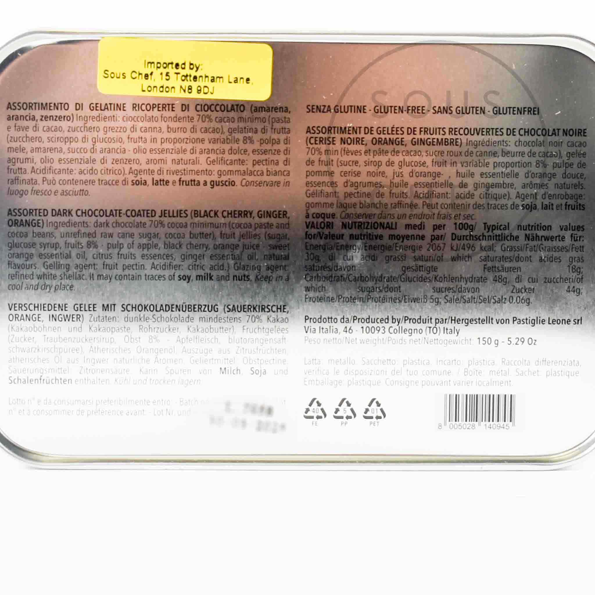 Leone Chocolate Coated Fruit Jellies in Gift Tin, 150g