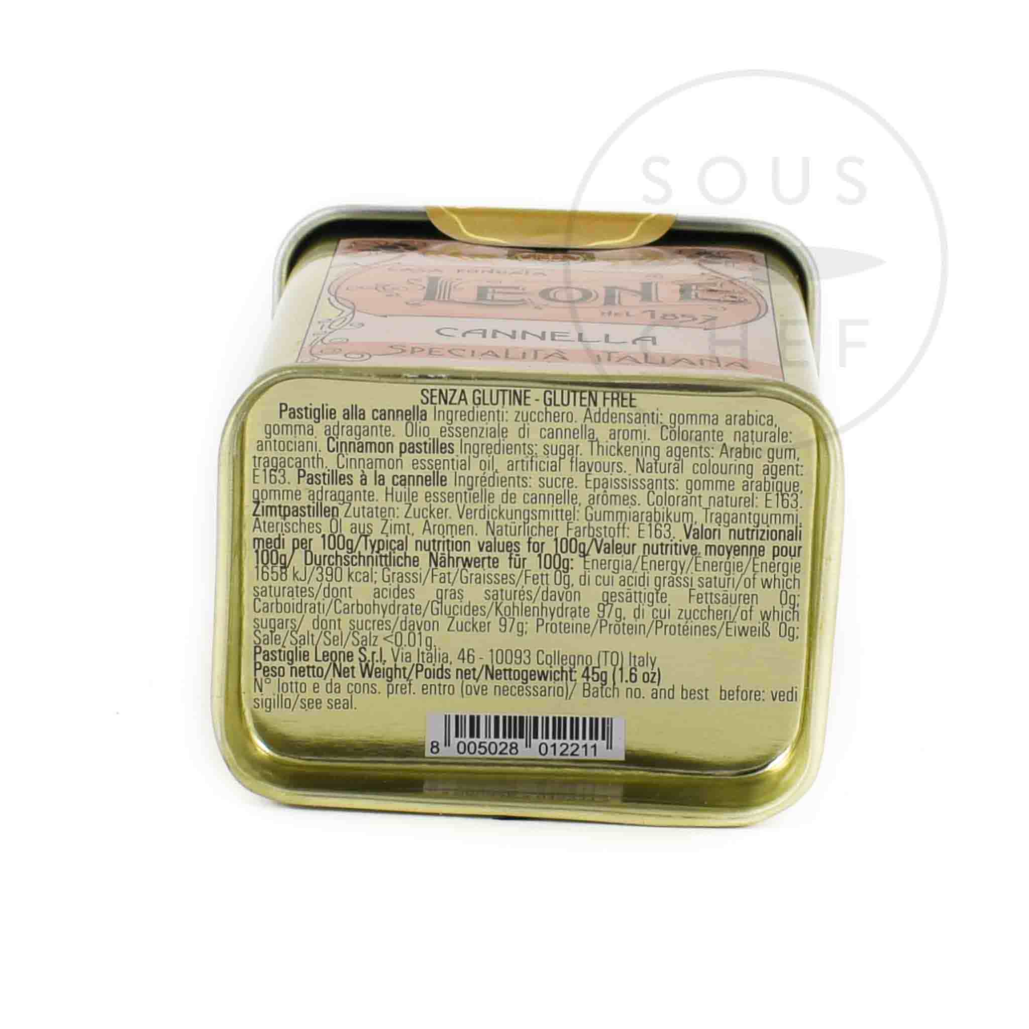 Leone’s cinnamon candies in a classic small tin are sweet and spiced delight! The crunchy sugar pastilles offer a burst of aromatic cinnamon flavour. They are the perfect combination of fragrant sweetness, in a peppermint-sized sweet.