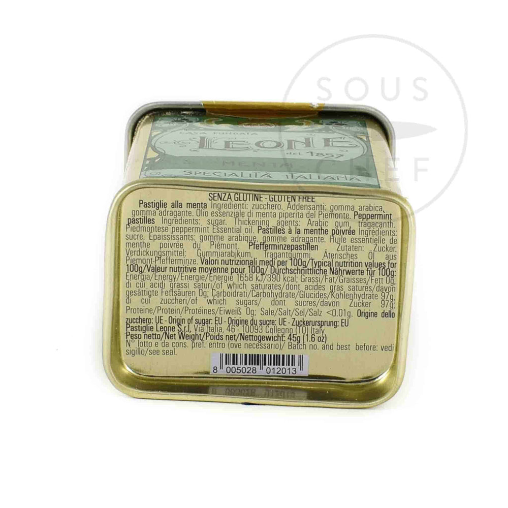 Enjoy Leone’s peppermint candies in a classic tin as a refreshing post-dinner sweet. These herbal crunchy pastilles are perfect as a digestive or palette cleanser. They make a delicious gift for peppermint lovers.