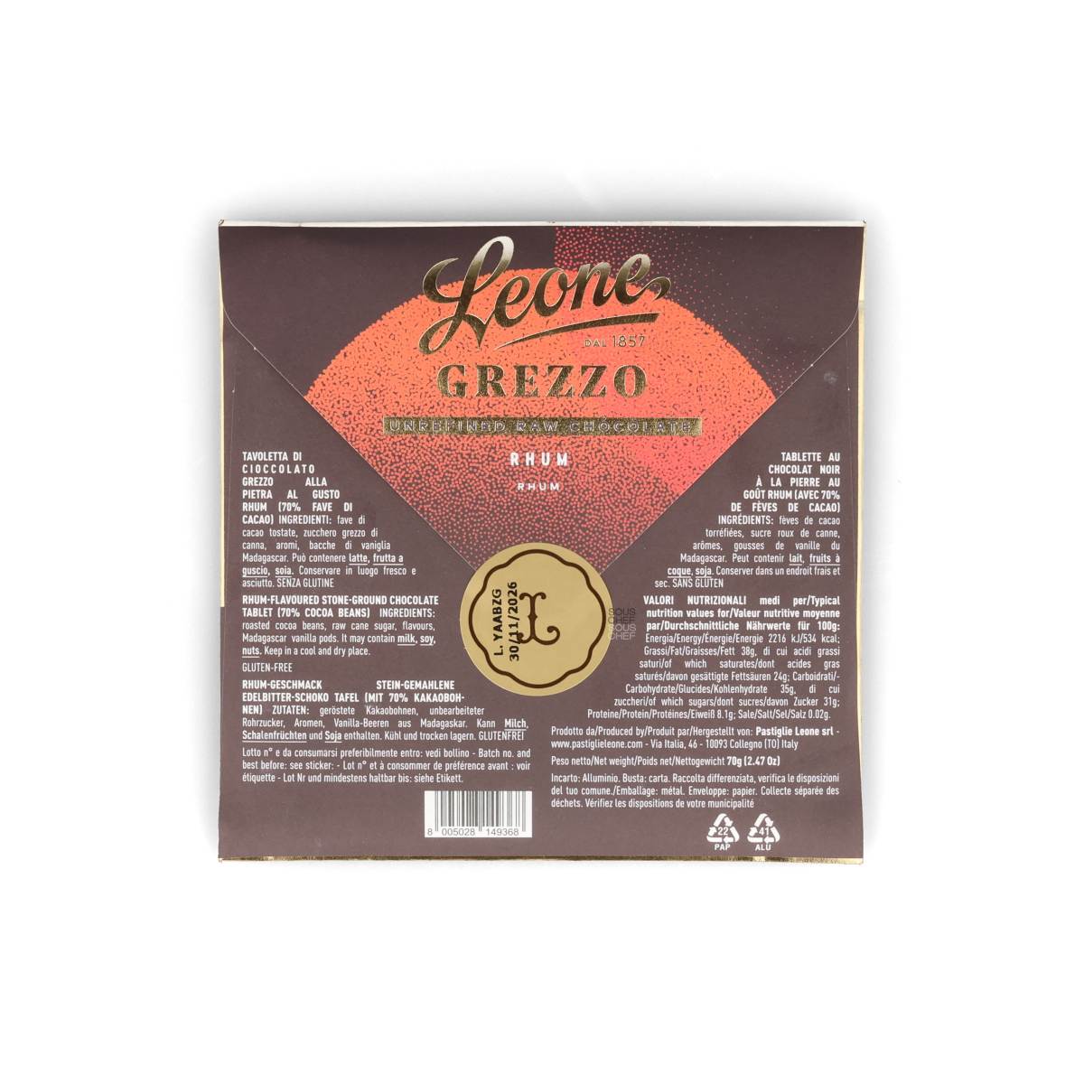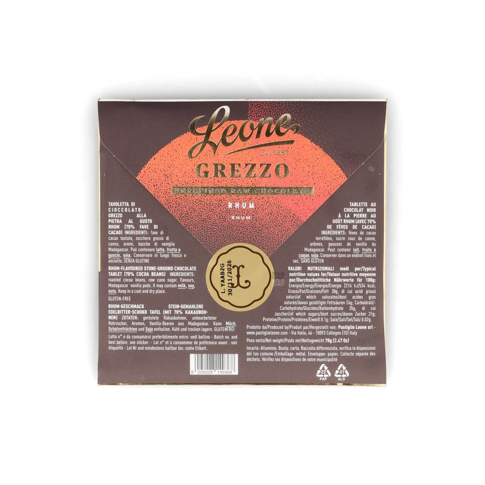 Leone Raw Unrefined 70% Rum Dark Chocolate Bar, 70g