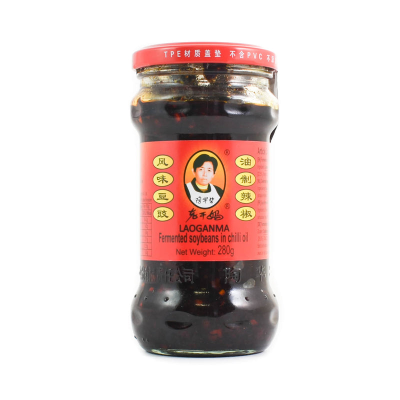 LGM Fermented soybean in chilli oil, or Lao Gan Mao fermented soybean in chilli, is a rich umami condiment. Add a spoon to stir fries, sauces, or rice dishes.