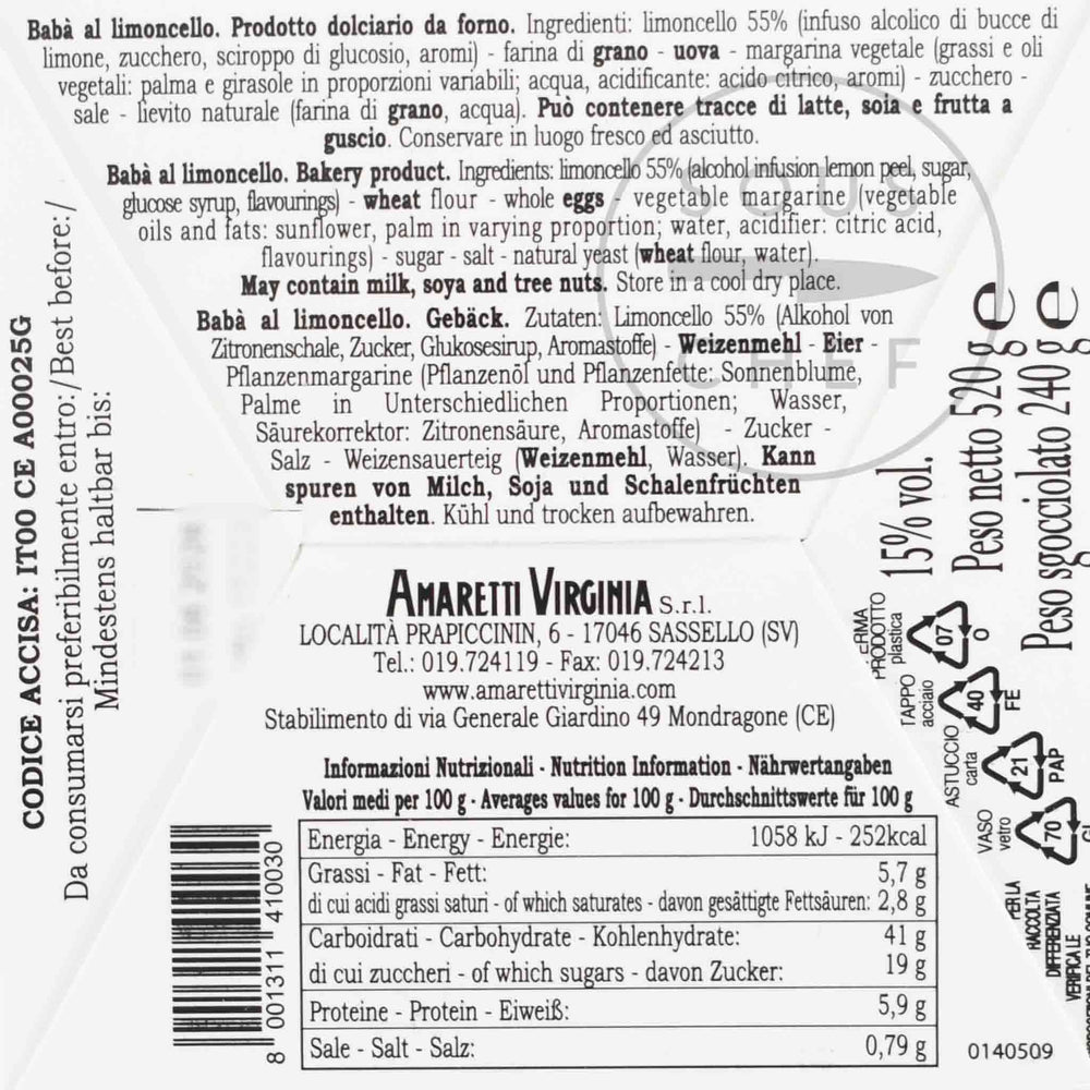 Amaretti Virginia Limoncello Baba in Glass Jar, 520g