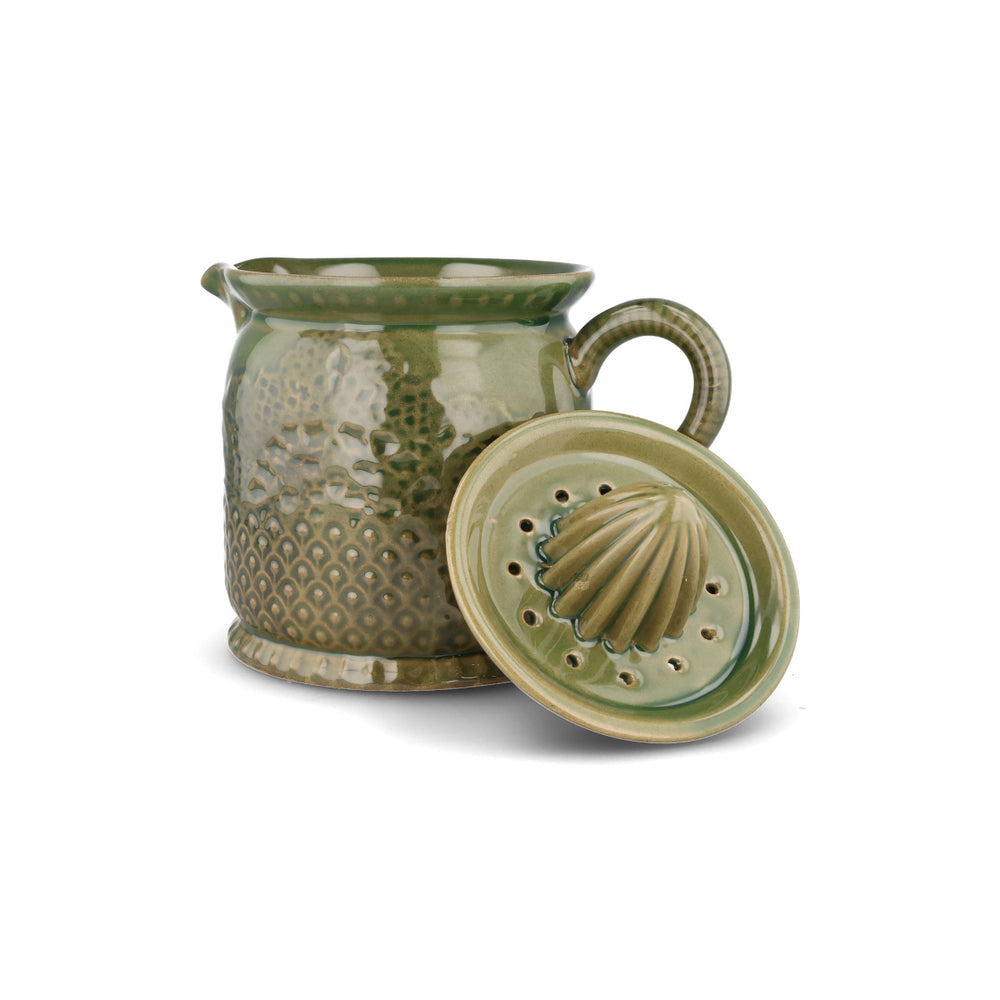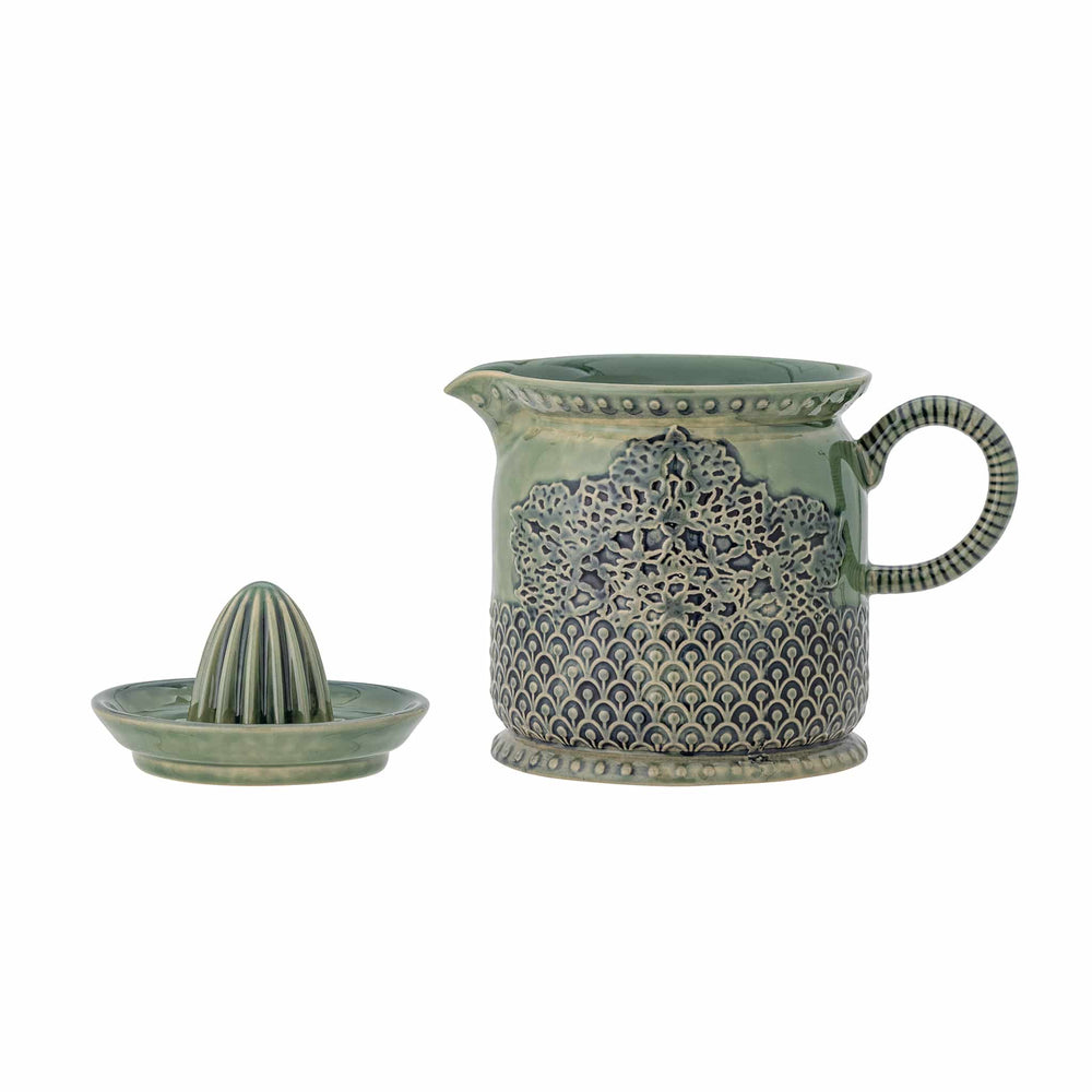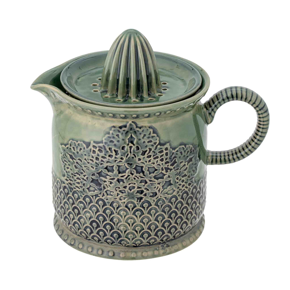 The juicer is made from stoneware in shades of green and blue. The intricate pattern makes this juicer a beautiful and practical addition to your kitchen.
