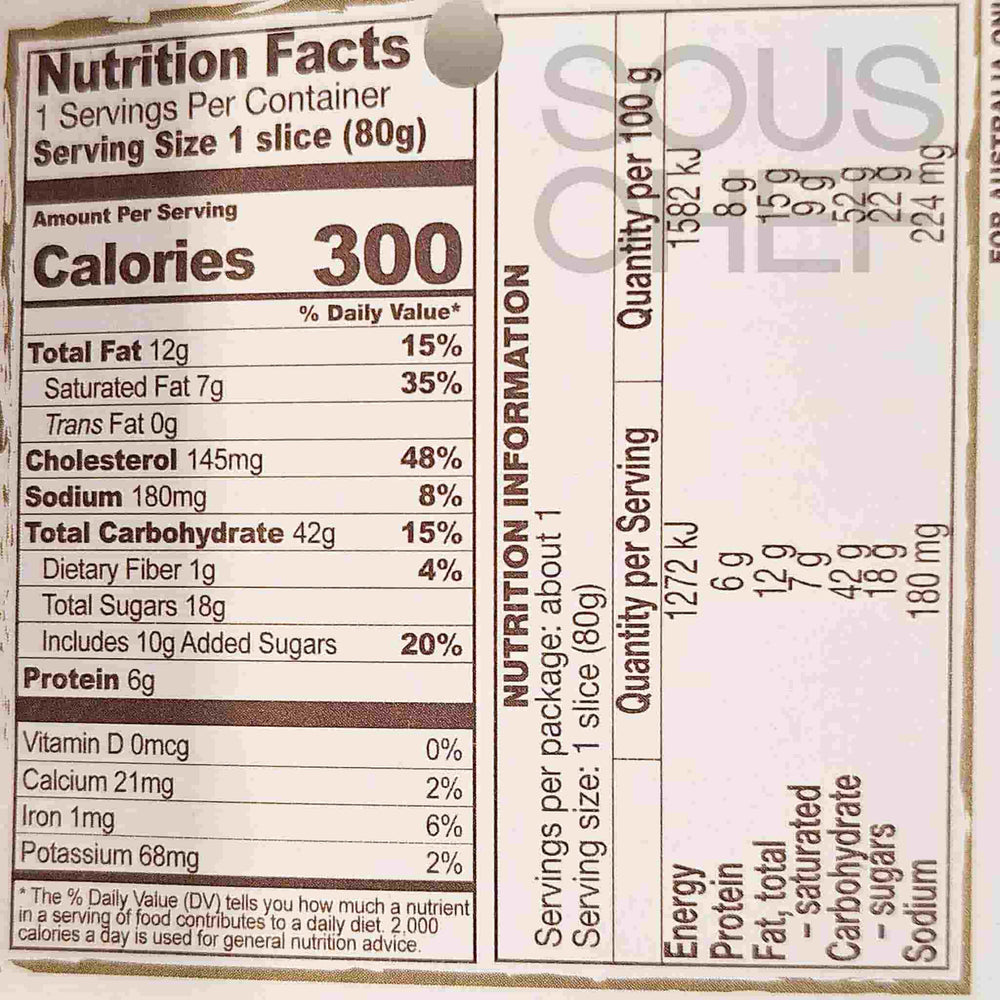 Product formulations and details may change. For the latest ingredients and allergen information always check product packaging prior to consumption. Ingredients: Wheat flour, candied cherries (14%) [cherry (54%), glucose-fructose syrup, sugar, acidity regulator: citric acid, natural flavors, carrot and hibiscus concentrated juice], butter (milk), sugar, fresh egg yolk, natural yeast (wheat), sultana raisins (6%), emulsifier: mono and diglycerides of vegetable origin fatty acids, inverted sugar syrup, candied orange peel paste (1%) [orange peels (53%), glucose-fructose syrup, sugar, acidity regulator: citric acid], salt, natural flavors
