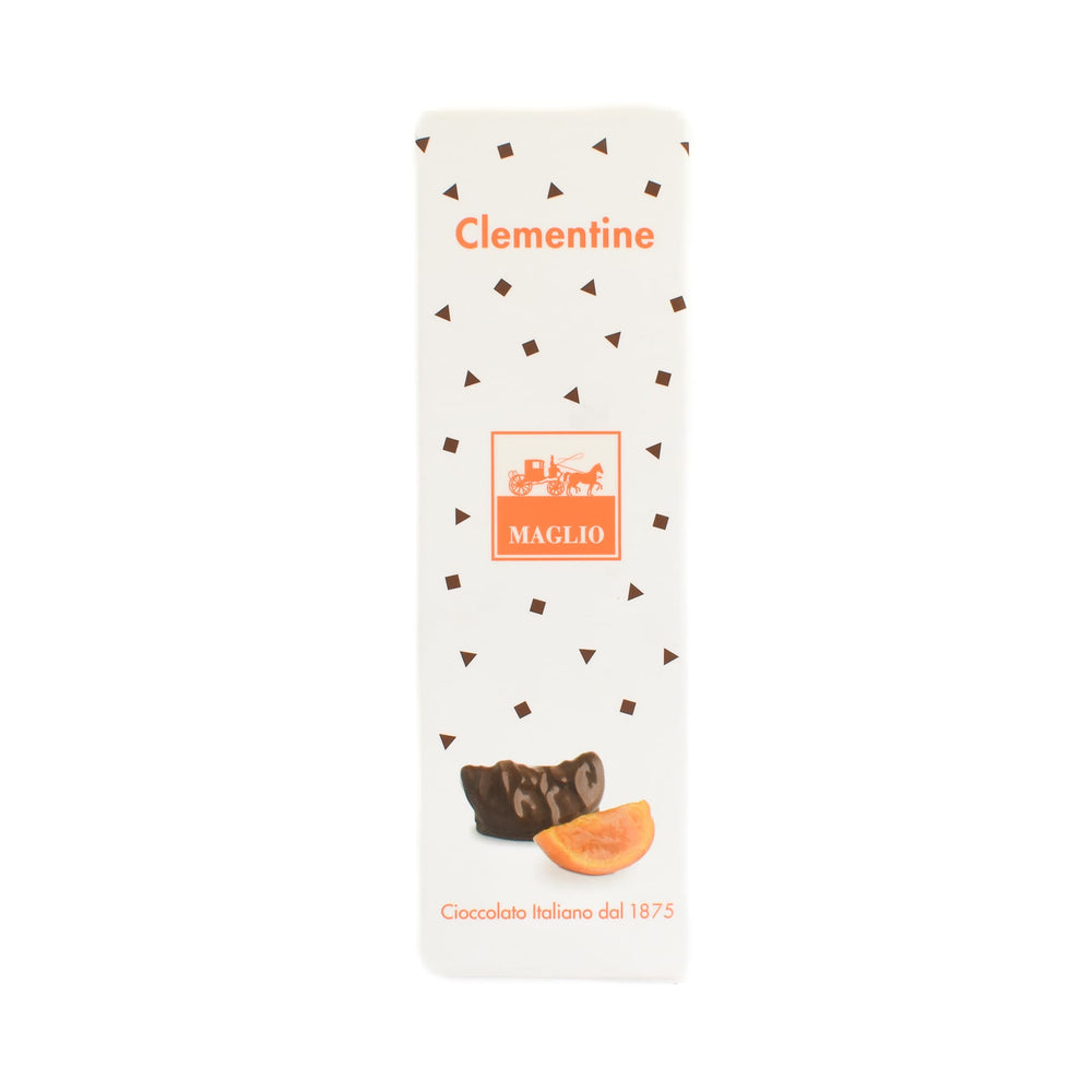 Maglio sources organic clementines from the Sibari plain in Calabria, southern Italy. The slices are candied and infused with maraschino cherry distillate. They have a soft, chewy texture and bright citrusy aroma.