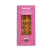 The bar is topped with a generous scattering of Giffoni IGP hazelnuts. The nuts are roasted and finely chopped, adding crunch and earthy flavour to every bite.