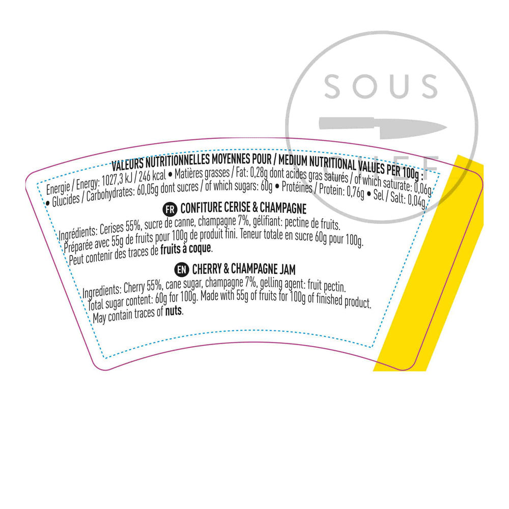 Product formulations and details may change. For the latest ingredients and allergen information always check product packaging prior to consumption. Ingredients: cherry 55%, cane sugar, champagne 7%, gelling agent: fruit pectin.