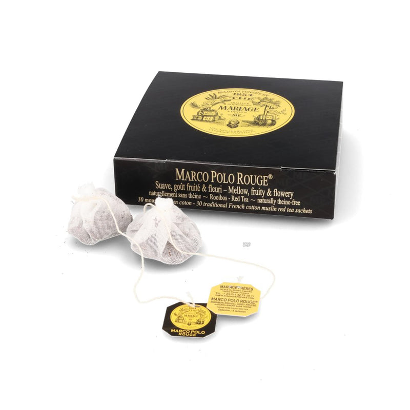 Discover the exotic flavour of Marco Polo Rouge tea. Created by Mariage Frères, its complex flavour will transport you to distant and mysterious lands.