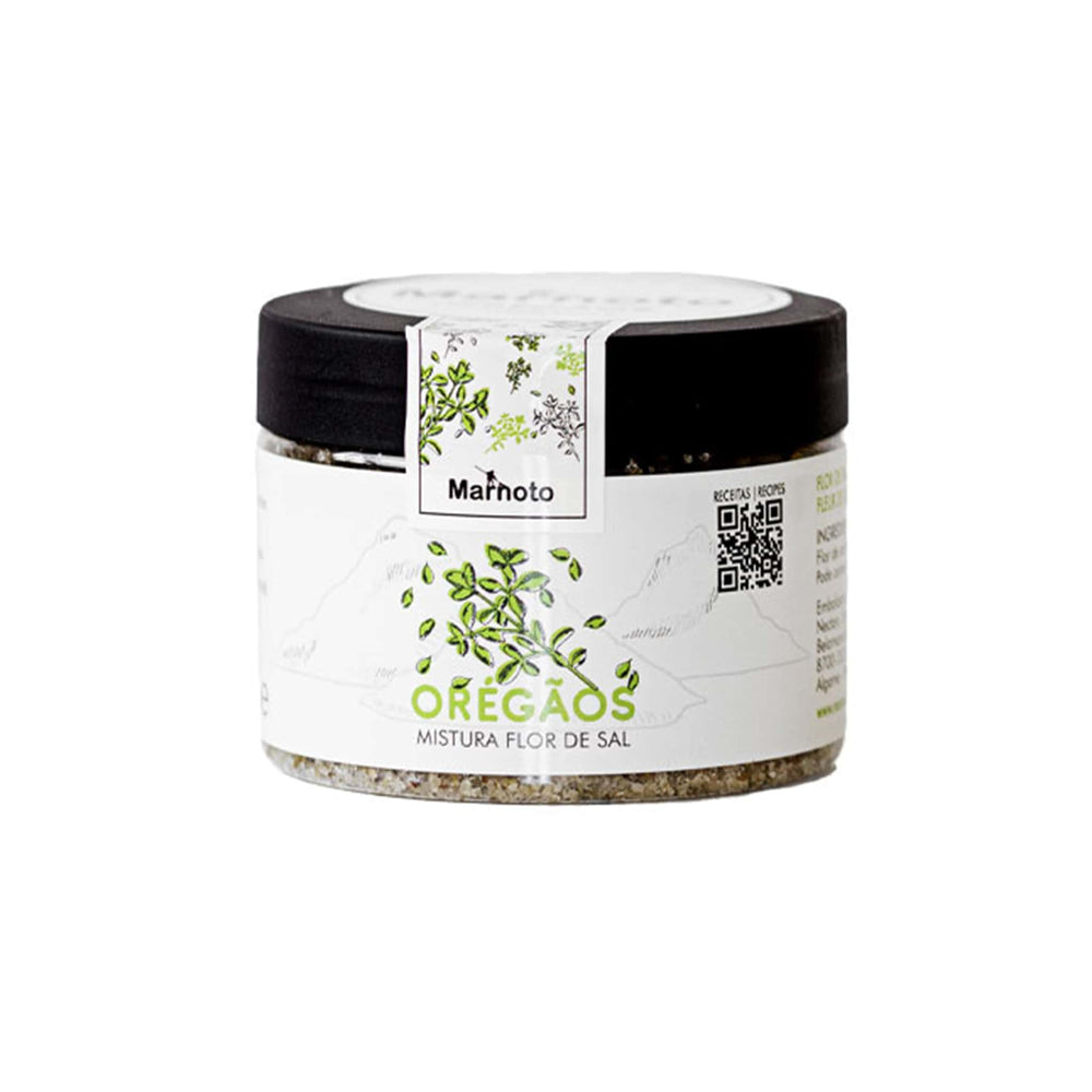 Marnoto fleur de sel is a flaky sea salt infused with oregano. Sprinkle it over salads, flatbreads and grilled fish.