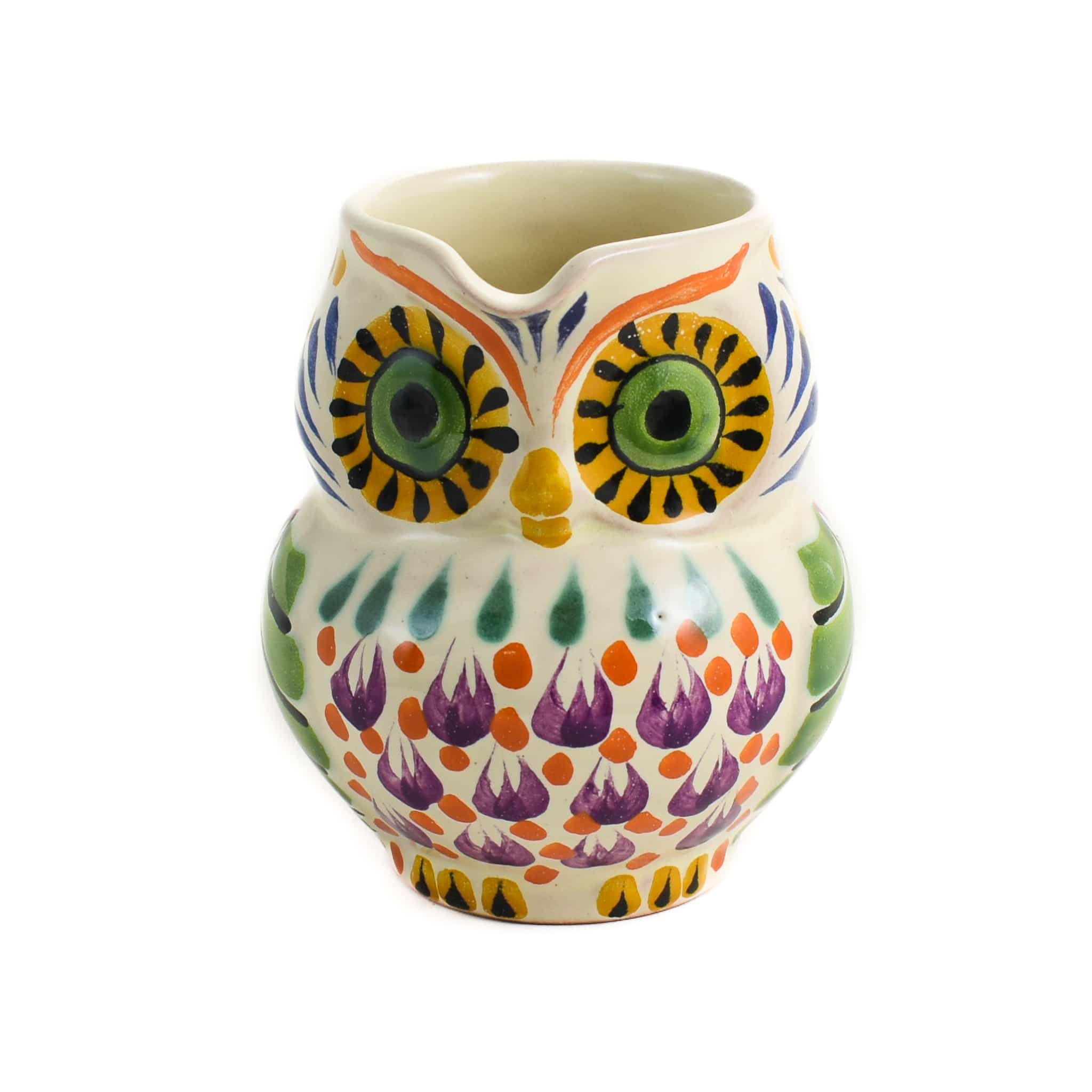 Brighten up your breakfast table with this Mexican milk jug. Shaped like an owl, it’s hand-painted in bold shades of blue, green and orange.