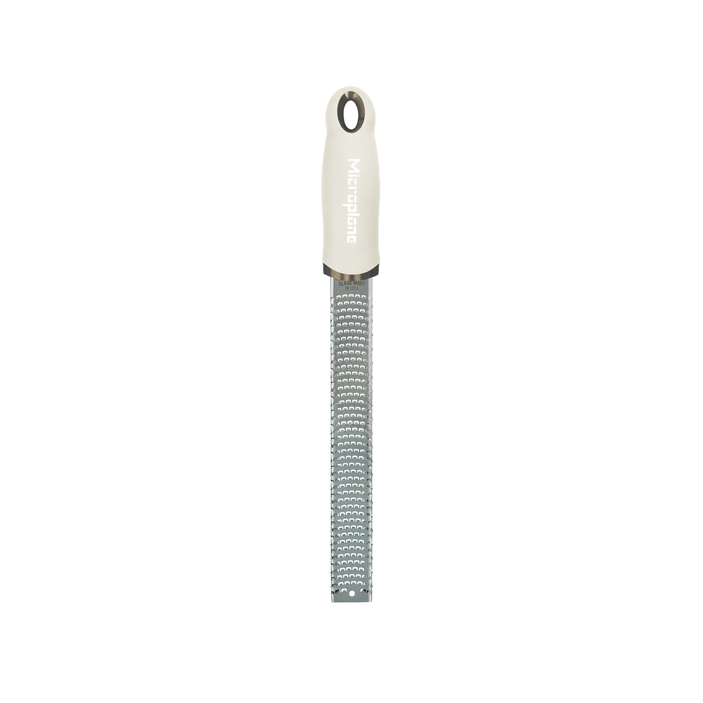 The Microplane cashmere beige premium zester is a must-have kitchen tool. It makes zesting and grating feel effortless. Use it to grate garlic and nutmeg or zest lemons and limes.