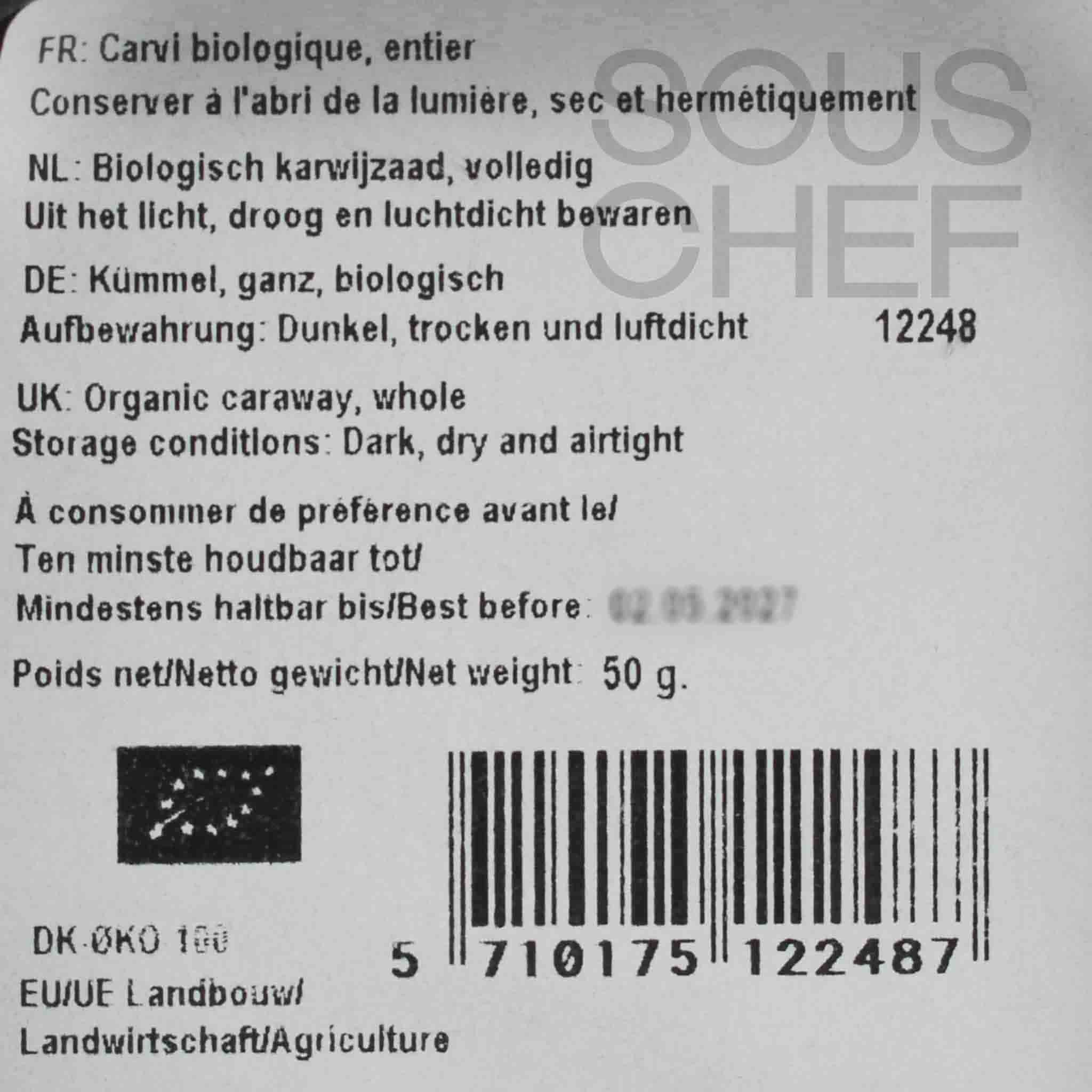 Product formulations and details may change. For the latest ingredients and allergen information always check product packaging prior to consumption. Ingredients: Caraway, organic. Contains mustard.
