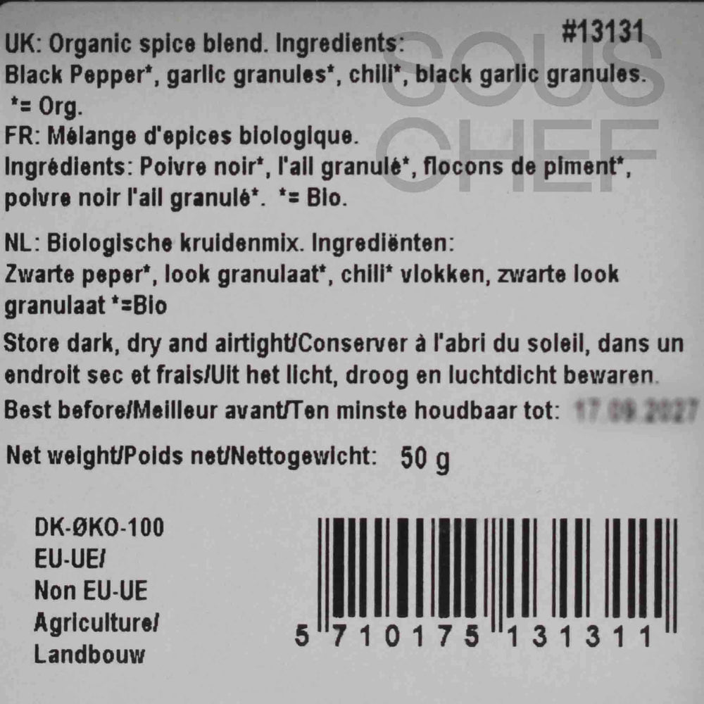 Product formulations and details may change. For the latest ingredients and allergen information always check product packaging prior to consumption. Ingredients: Black pepper, garlic, chilli, black garlic