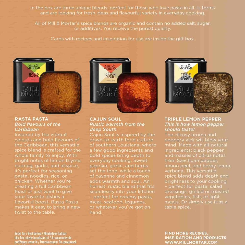 Size: Includes: Triple Lemon Pepper 50g, Rasta Pasta Spice Blend 55g, Cajun Soul Spice Blend 50g
