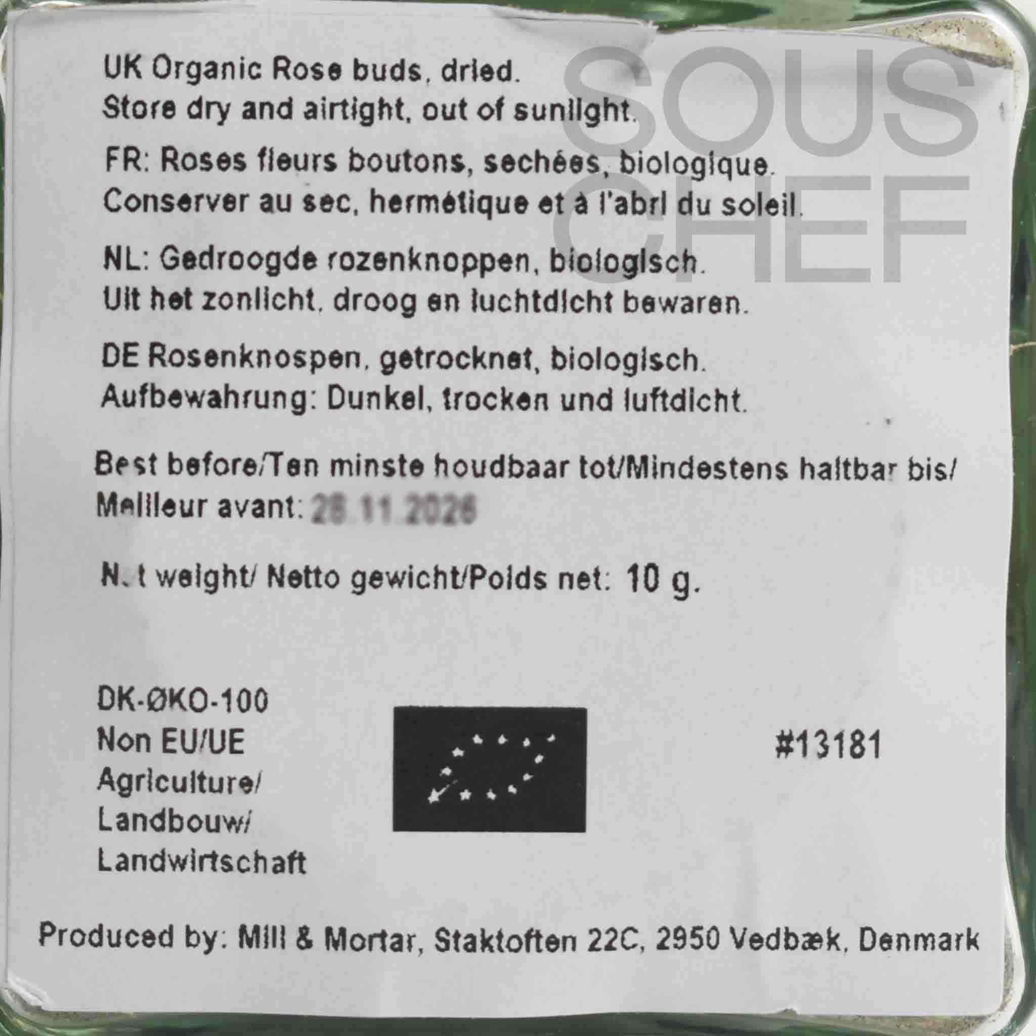Organic rose buds are a beautiful garnish for drinks and desserts. Their pale pink colour looks fantastic against white icing or floating in a G&T.