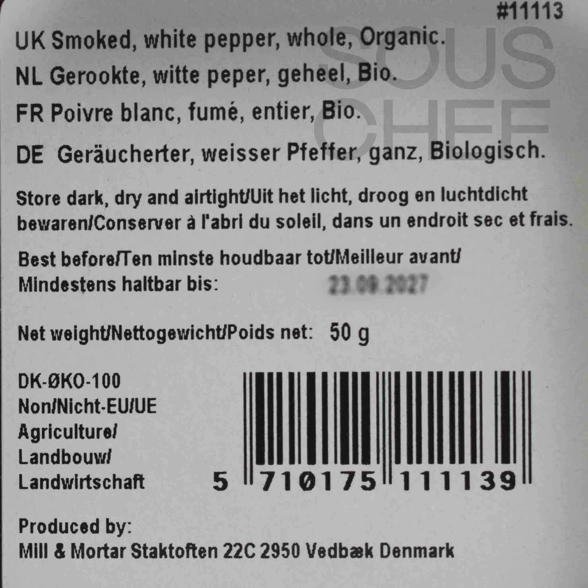 Mill & Mortar Organic Smoked White Pepper, 50g