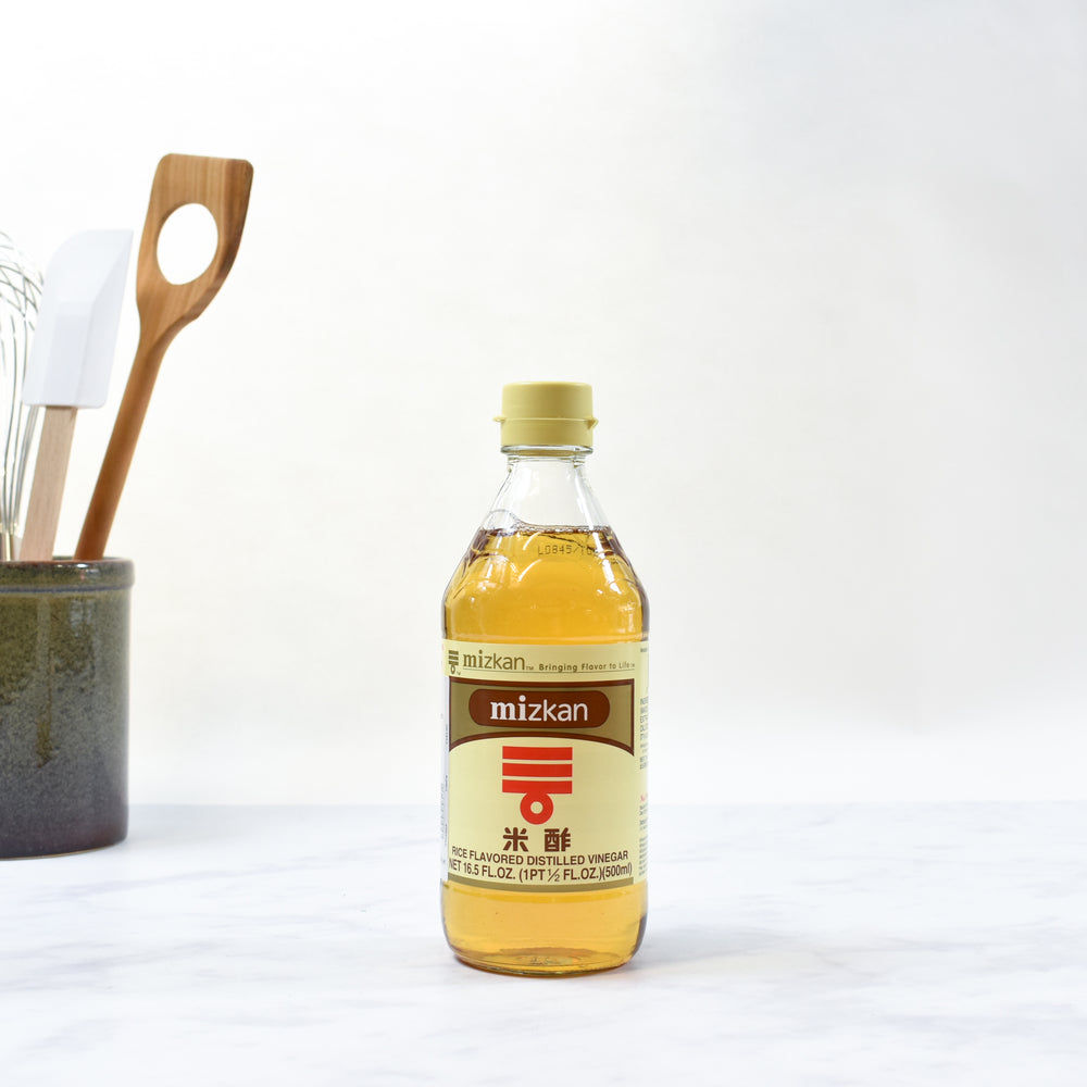 Mizkan is Japan's number one vinegar brand, and this rice vinegar - yonezu or komesu - is the perfect vinegar for making sushi rice. Becuase the Japanese rice vinegar is distilled from rice itself, it is the ideal pairing. The rice vinegar has mild and mellow, delicate sweet rice notes.