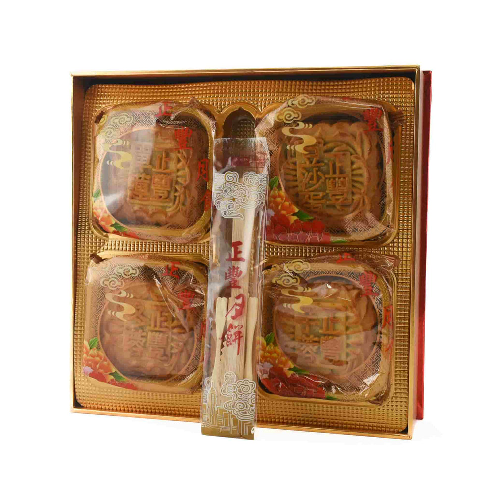 These Chinese mooncakes have four delicious fillings. Choose from white lotus paste, red bean paste, winter melon paste and ‘five nuts’ (with walnuts and almonds).