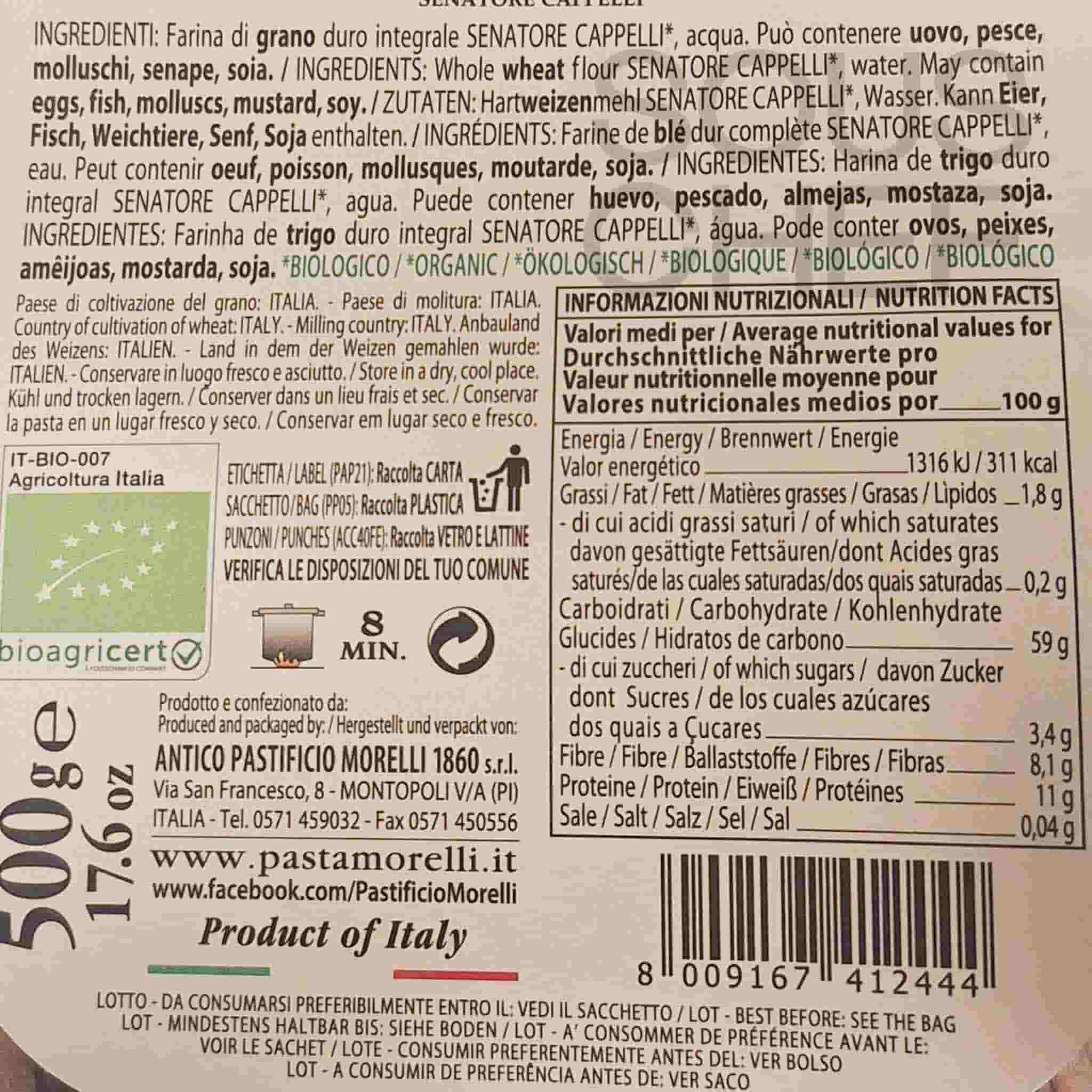 Product formulations and details may change. For the latest ingredients and allergen information always check product packaging prior to consumption. Ingredients: Whole wheat flour senatore cappelli, water