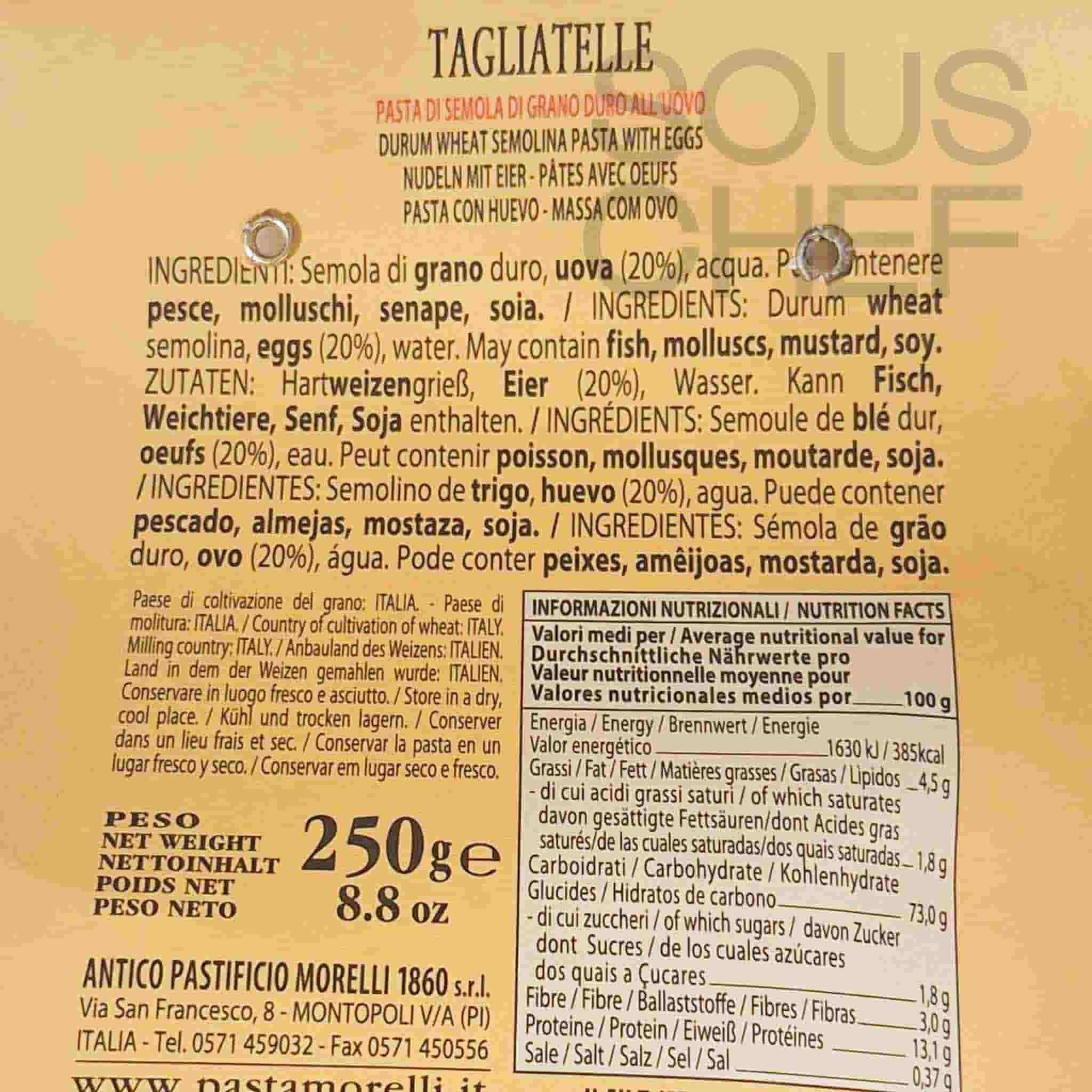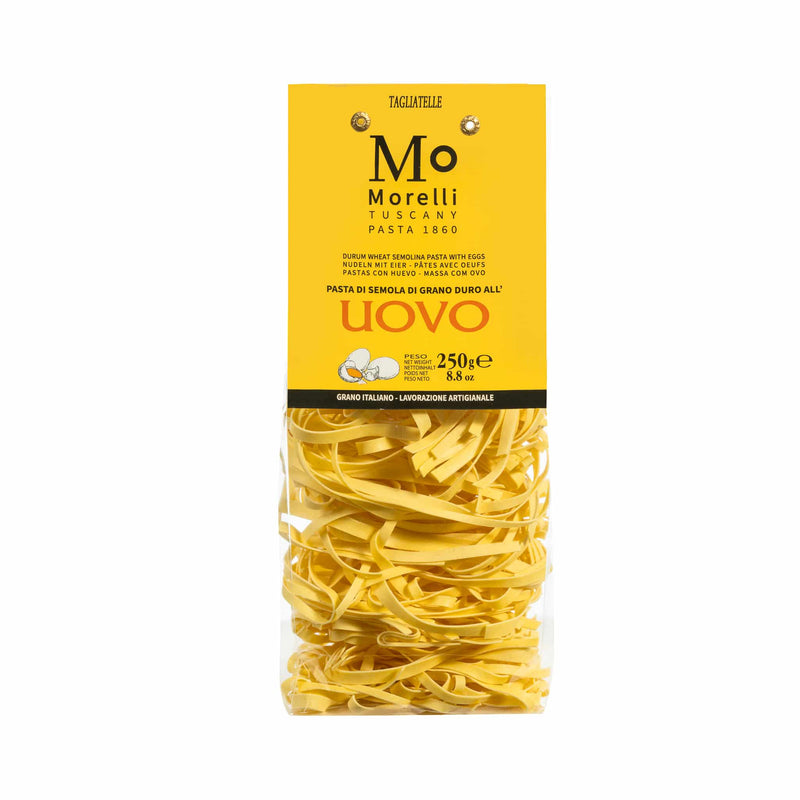 Morelli tagliatelle turns simple suppers into something special. The golden strands are made with eggs, water and Tuscan durum wheat semolina.