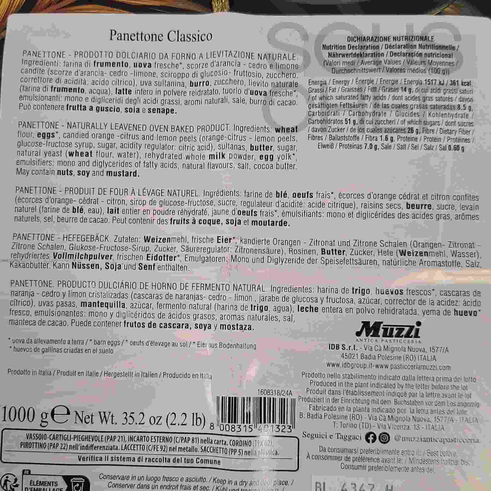Muzzi panettones are made with fresh eggs, delivered daily, along with carefully selected butter, milk and sugar. The panettones are made using a mother yeast that is carefully tended, and follow a traditional recipe that has been perfected over many years.