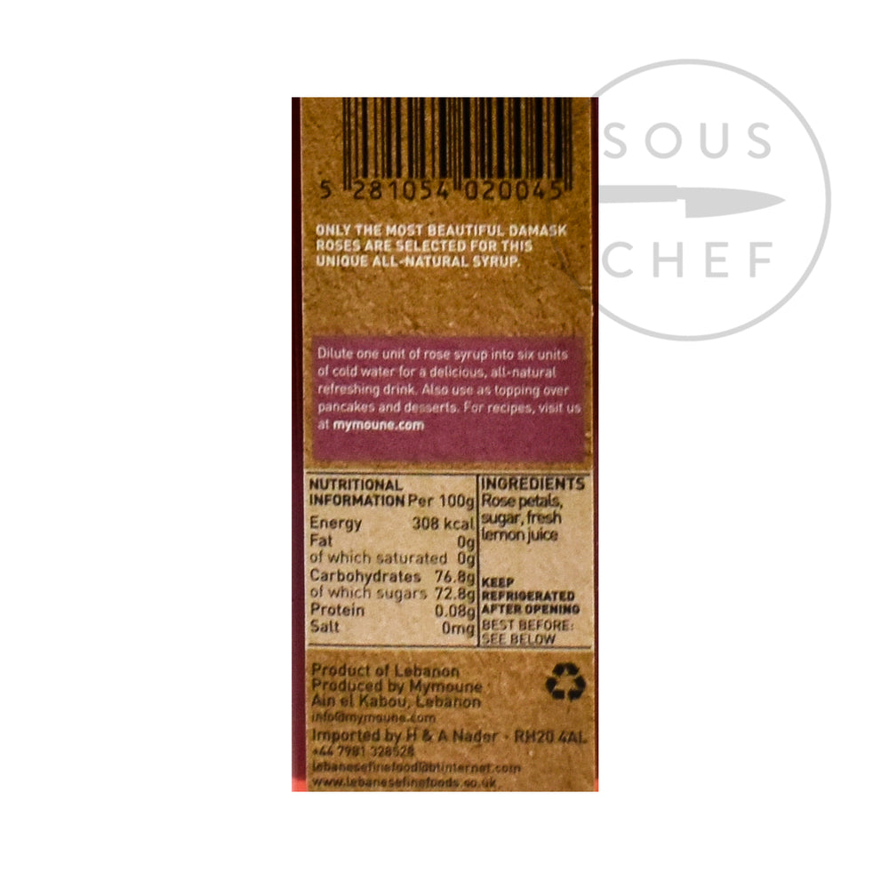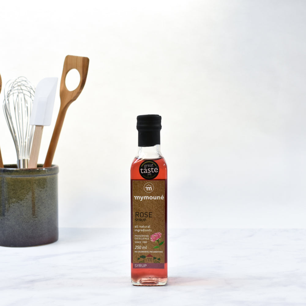 Mymouné’s Rose Syrup is much more than just a flavouring for desserts. Diluted in water with lots of ice and a squeeze of lemon or lime it makes a refreshing summer drink. For those special occasions, serve in a glass of champagne to add a delicate aroma. Or why not try it straight from the bottle – next time you have a fruit salad drizzle a little over the fruit for a taste of the Middle East.