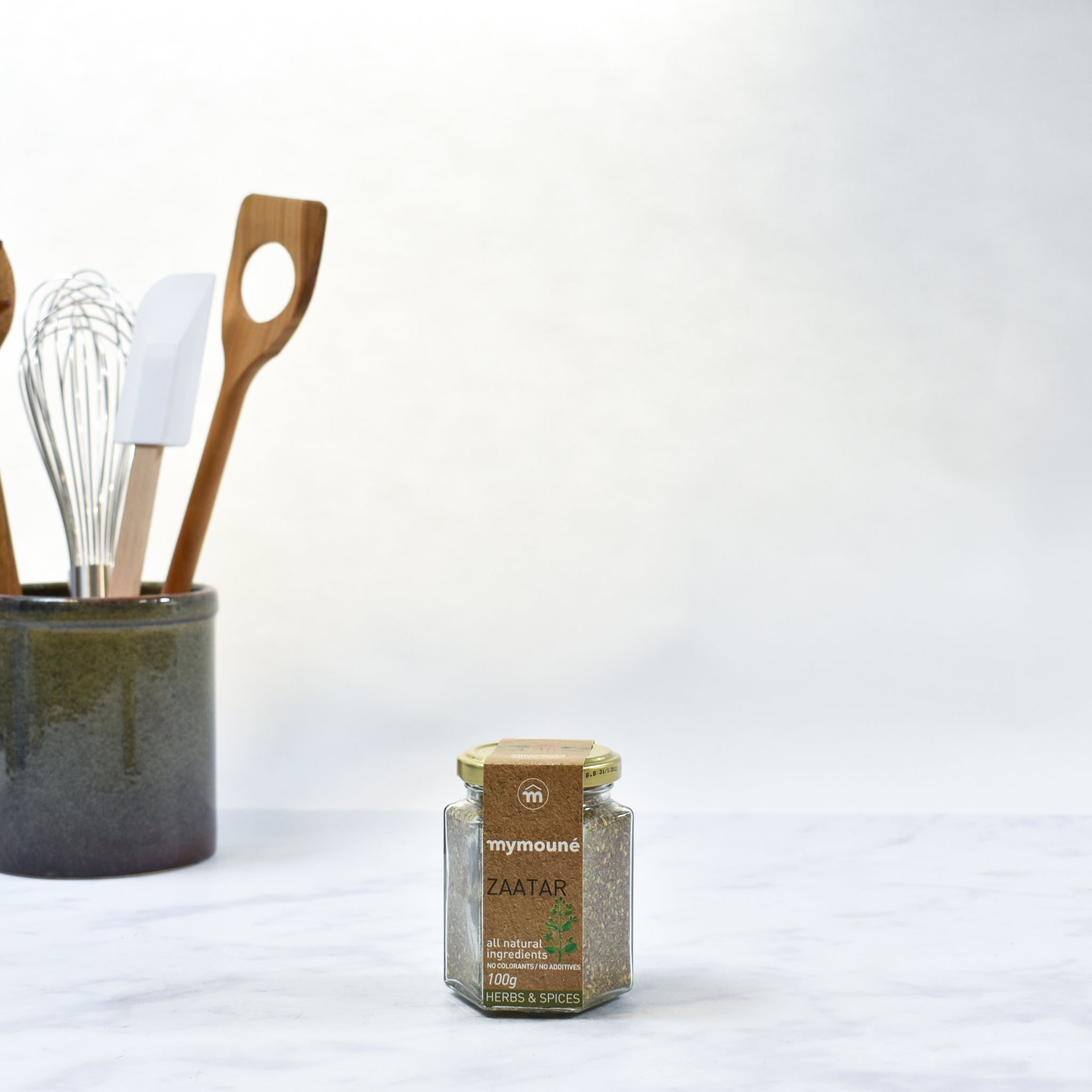 Mymouné zaatar is an all-natural blend of wild dried thyme, mildly roasted sesame seeds, sumac and salt. Zaatar is a quintessential Middle Eastern spice blend, and apart from thyme the exact ingredients of zaatar can vary almost from household to household.