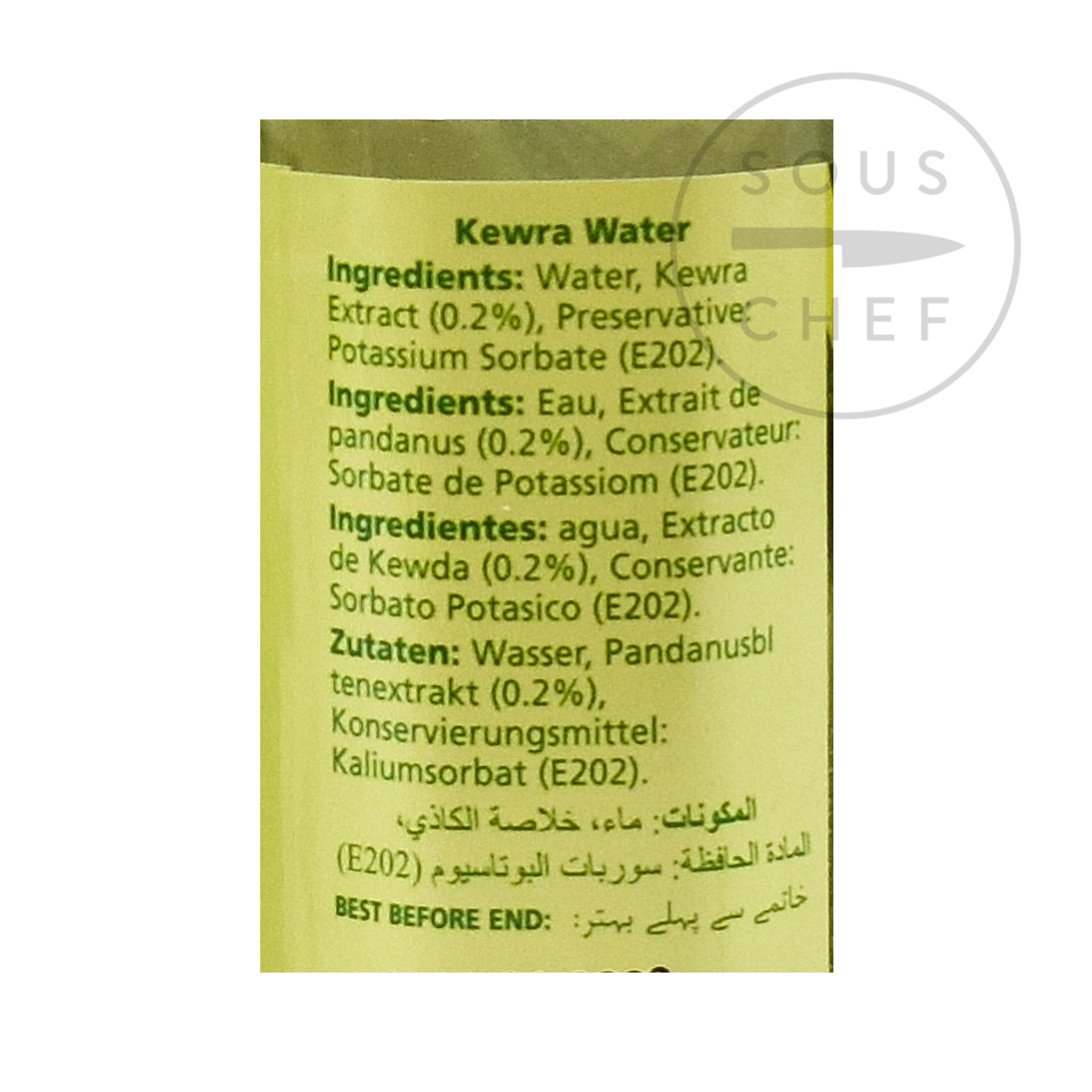 Product formulations and details may change. For the latest ingredients and allergen information always check product packaging prior to consumption. Ingredients: Water, kewra extract (0.2%), preservative: potassium sorbate (E202)