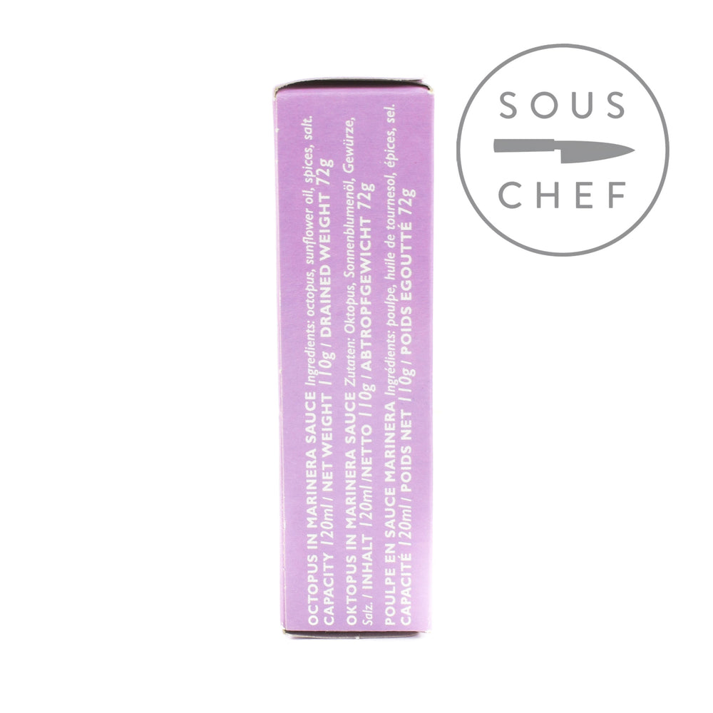 Product formulations and details may change. For the latest ingredients and allergen information always check product packaging prior to consumption. Ingredients: Octopus (molluscs), sunflower oil, paprika, garlic, clove, black pepper and salt. May contain traces of fish and crustaceans.