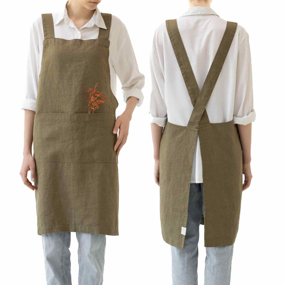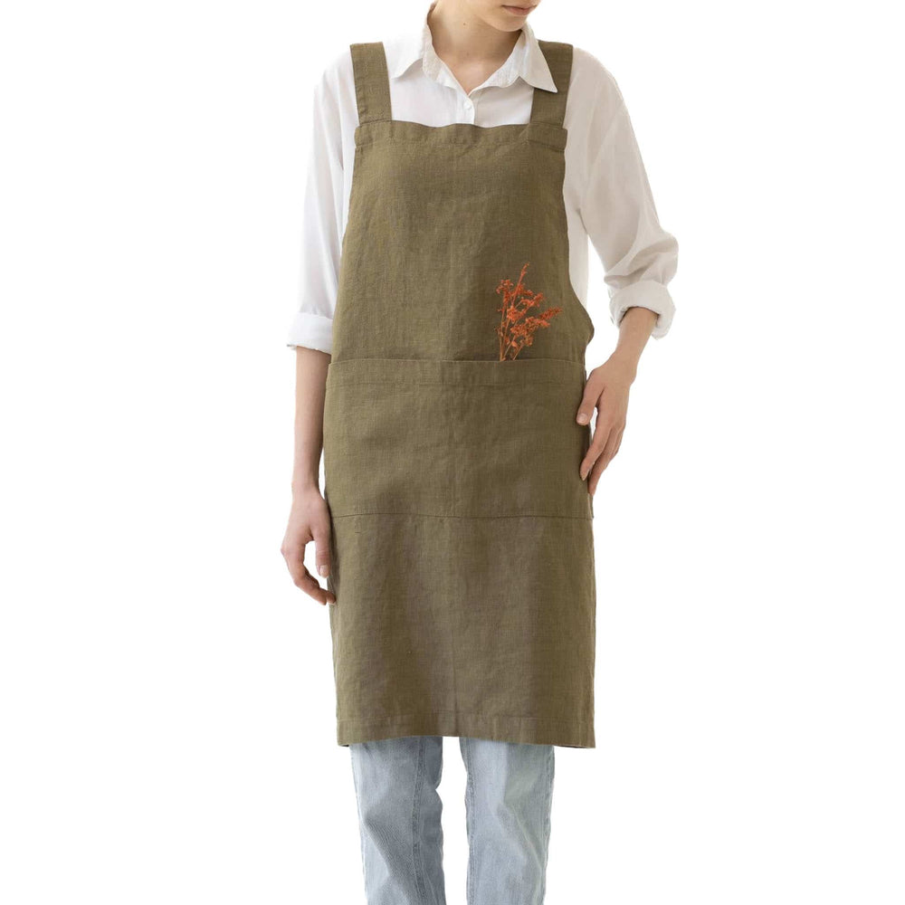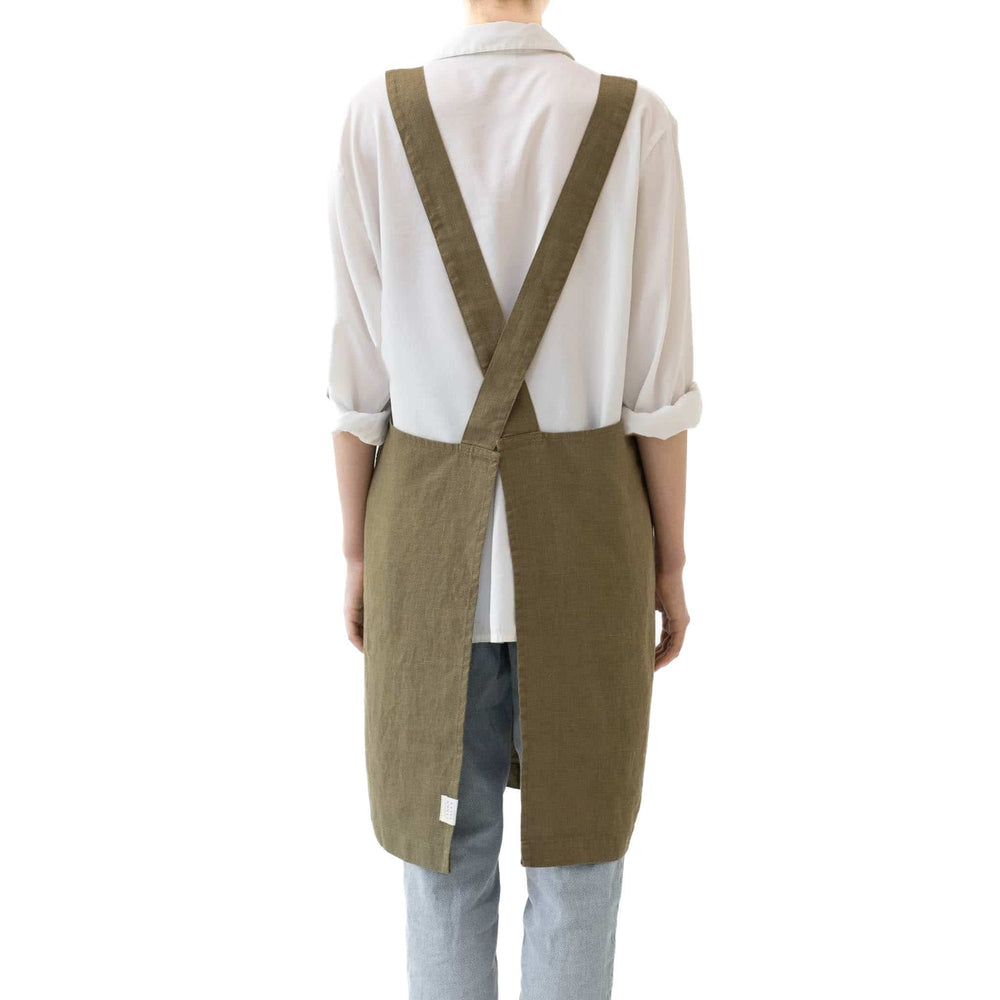 Olive Crossback Linen Apron