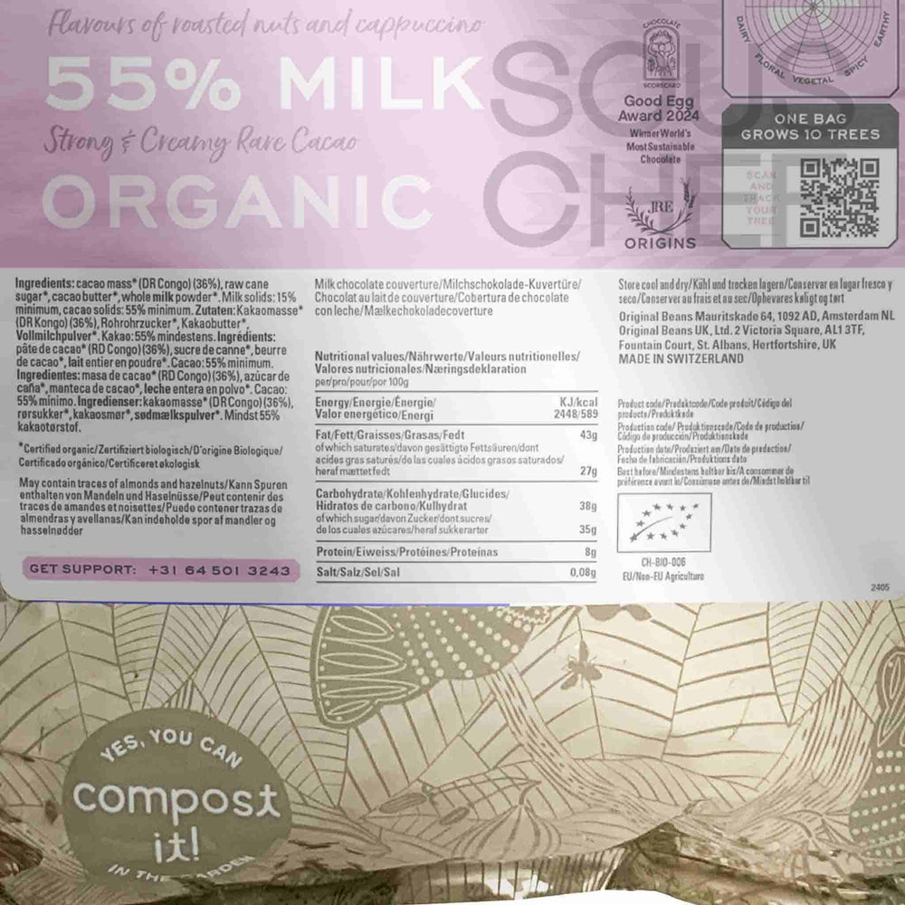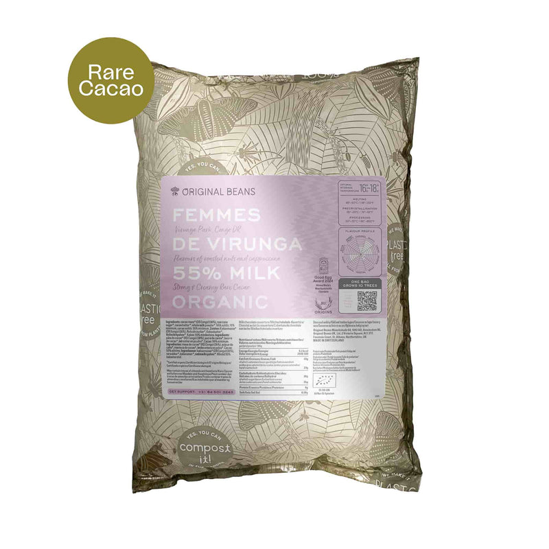 Original Beans 55% Femmes de Virunga Dark Milk Couverture Chocolate, 2kg