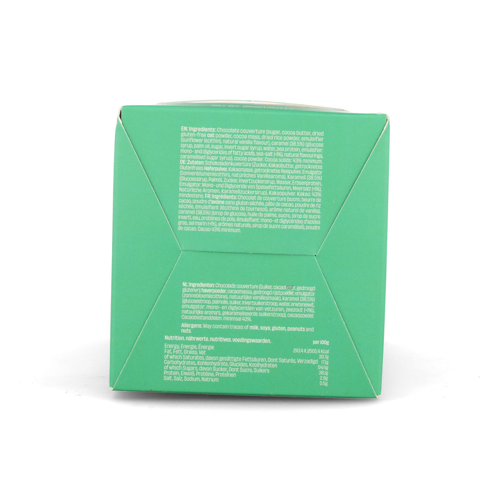 Product formulations and details may change. For the latest ingredients and allergen information always check product packaging prior to consumption. Ingredients: Chocolate couverture (60%) (sugar, cocoa butter, dried gluten-free oat powder, cocoa mass, dried rice powder, emulsifier (sunflower lecithin), natural vanilla flavour), caramel (38.5%) (glucose syrup, palm oil, sugar, invert sugar syrup, water, pea protein, emulsifier: mono- and diglycerides of fatty acids, sea-salt (<1%), natural flavourings, caramelised sugar syrup), cocoa powder (<1%). cocoa solids: 43% minimum.