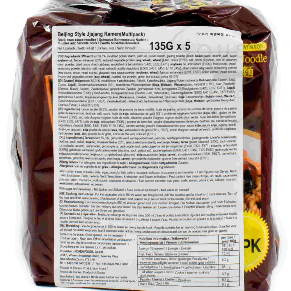 Product formulations and details may change. For the latest ingredients and allergen information always check product packaging prior to consumption. Ingredients: wheat flour, modified starch (tapioca, potato), palm oil, potato starch, jjajang powder (black bean paste, dextrin, salt), sugar, soybean oil, monosodium glutamate, textured vegetable protein, (soy, wheat), wheat gluten, caramel colour (E150), salt, onion oil (onion, corn oil, sesame), onion powder, dried onion, dried cabbage, emulsified oil [Oligosaccharide, soybean oil, tocopherol, lecithin, mono and diglycerides of fatty acids), fried potato, yeast seasoning (dextrin, salt, yeast extract), acidity regulators (sodium carbonate, sodium tripolyphosphate, sodium acid pyrophosphate, calcium carbonate, potassium polymetaphosphate), dried carrot, soy sauce seasoning (soy, sauce, onion, yeast extract, glucose), soy sauce powder (soybean, wheat), disodium inosinate, disodium guanylate, onion extract, yeast extract, hydrolyzed vegetable protein (soybean, wheat), roasted rice powder, green tea extract, riboflavin.