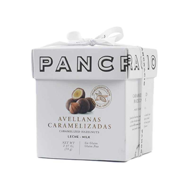 Pancracio caramelised hazelnuts are an elegant after-dinner snack to enjoy with coffee. The caramelised hazelnuts are covered in layers of white chocolate and milk chocolate to create an indulgent, crunchy treat.
