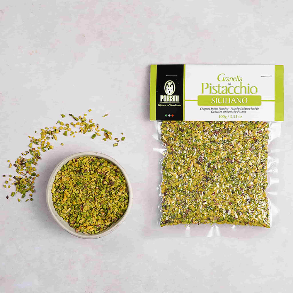 Pariani chopped Sicilian pistachios are a vibrant finishing touch for cakes and desserts. Sprinkle over the ricotta cream at either end of a cannoli for some classic Sicilian treats. Or scatter over cheesecakes, chocolate mousse, and iced cakes for a burst of colour and crunch.