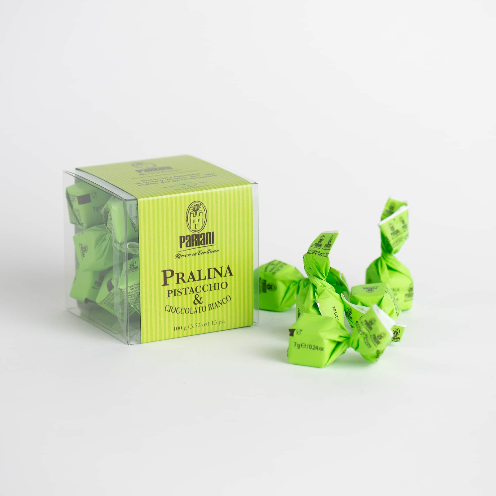 Pariani Pistachio and White Chocolate Pralines, 100g