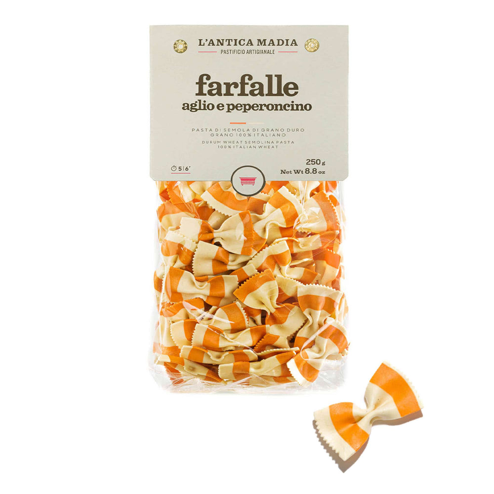Pasta L'Antica Striped Farfalle with Garlic & Chili, 250g