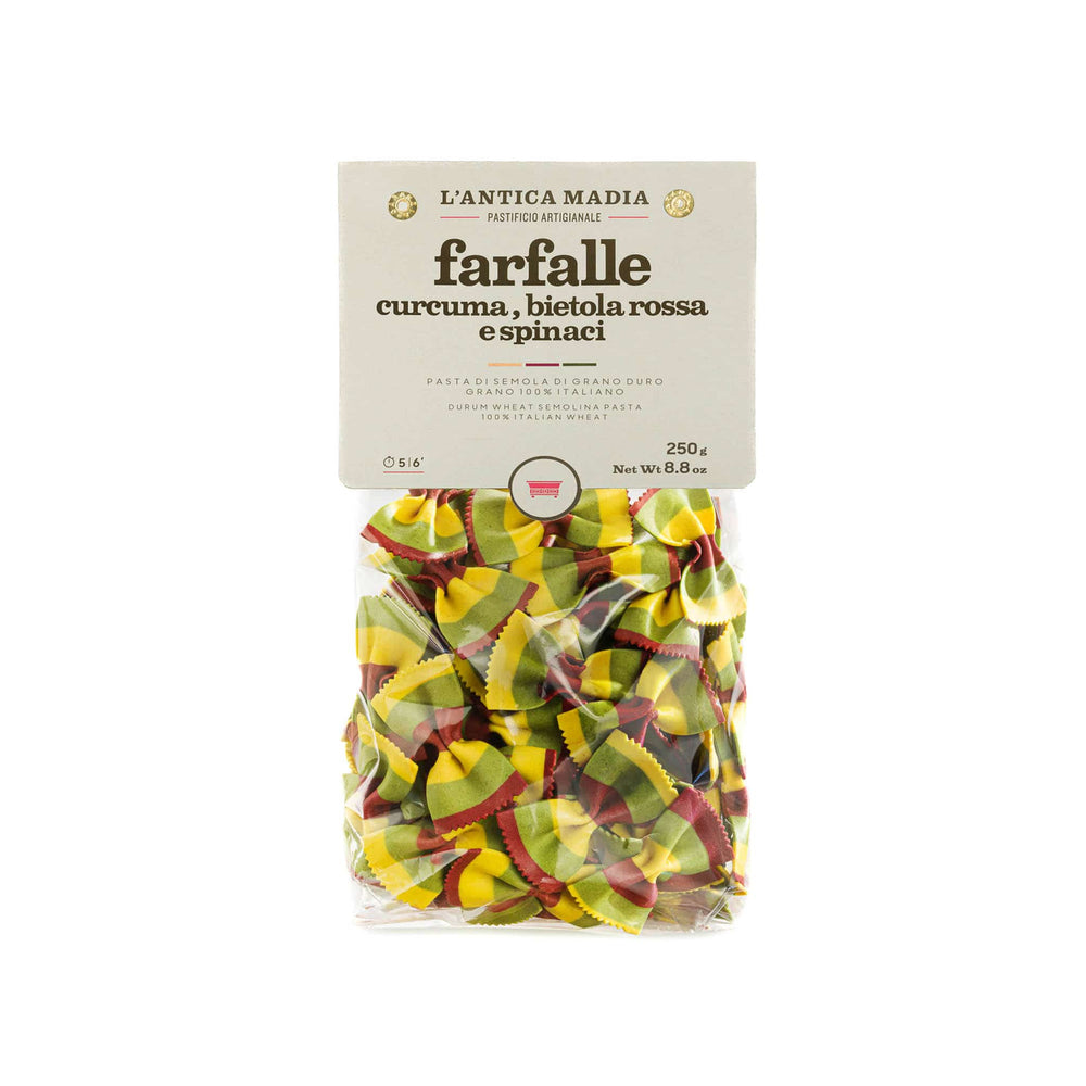 Pasta L'Antica Striped Farfalle with Turmeric, Beetroot & Spinach, 250g