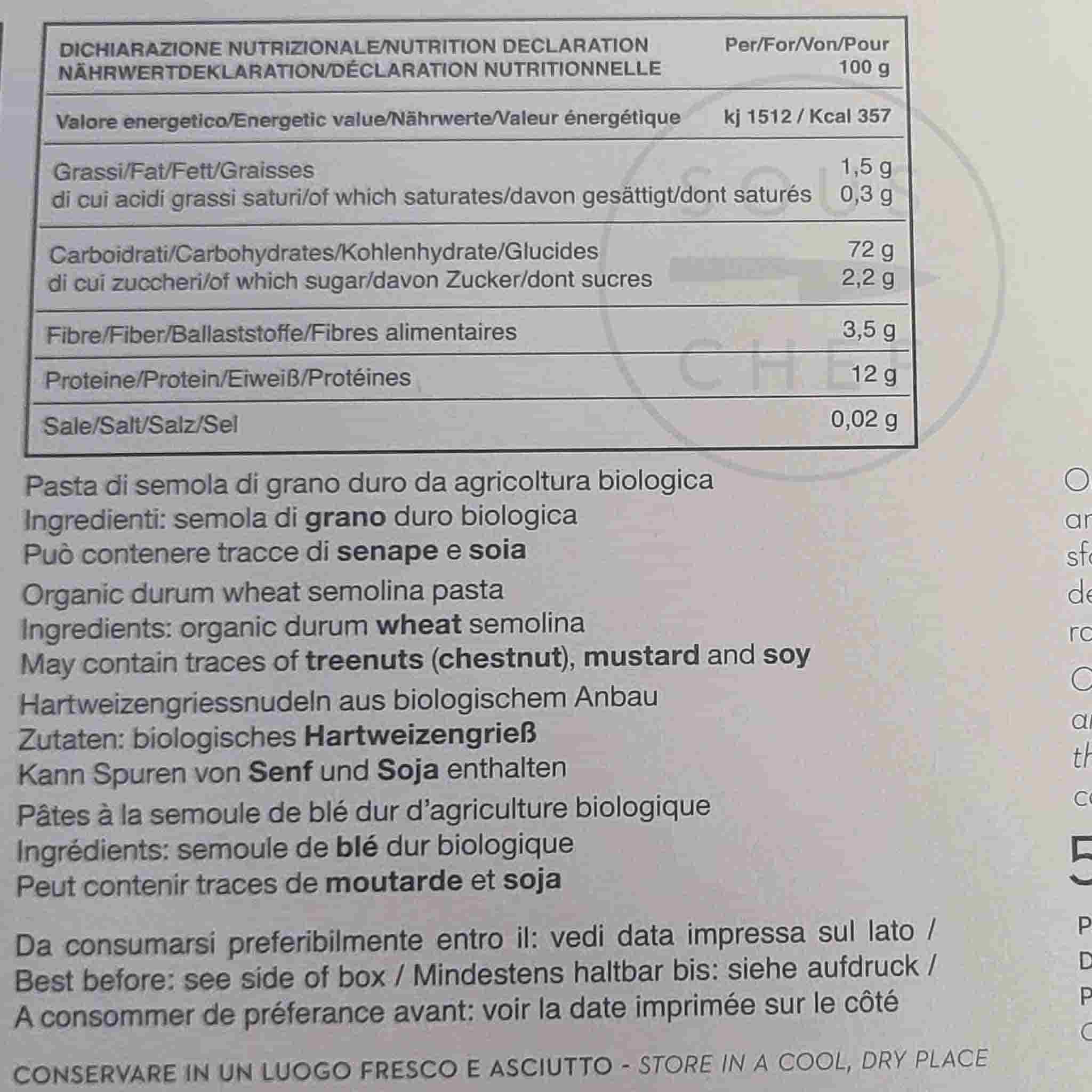 Product formulations and details may change. For the latest ingredients and allergen information always check product packaging prior to consumption. Ingredients: Organic durum wheat semolina 100%