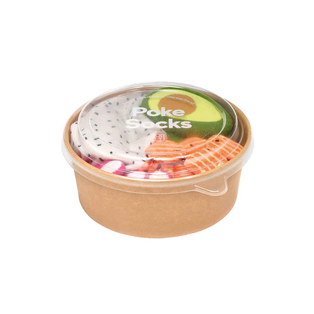 The poke bowl socks gift set is the perfect gift for any lovers of this Hawaiian dish! Containing 2 pairs of unique socks, this set comes in a circular cardboard box just like you would get a fresh poke bowl in.