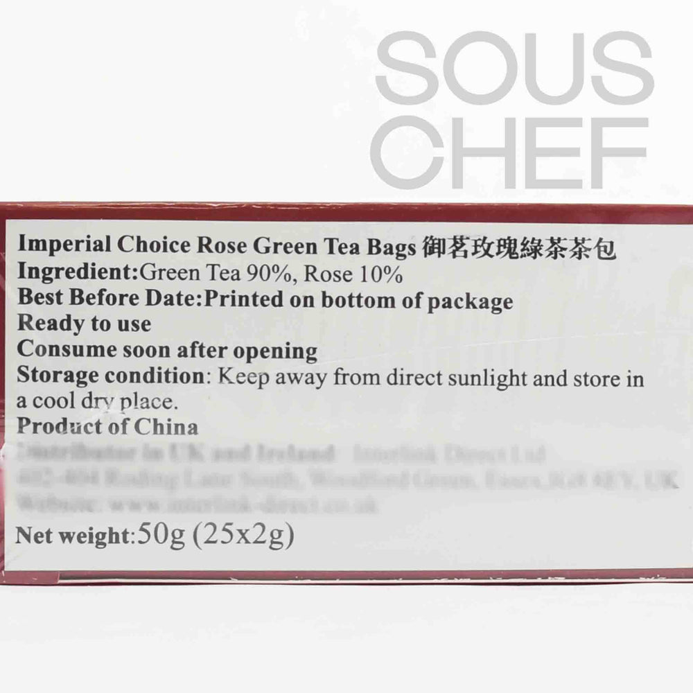 Product formulations and details may change. For the latest ingredients and allergen information always check product packaging prior to consumption. Ingredients: Green tea 90%, rose 10%