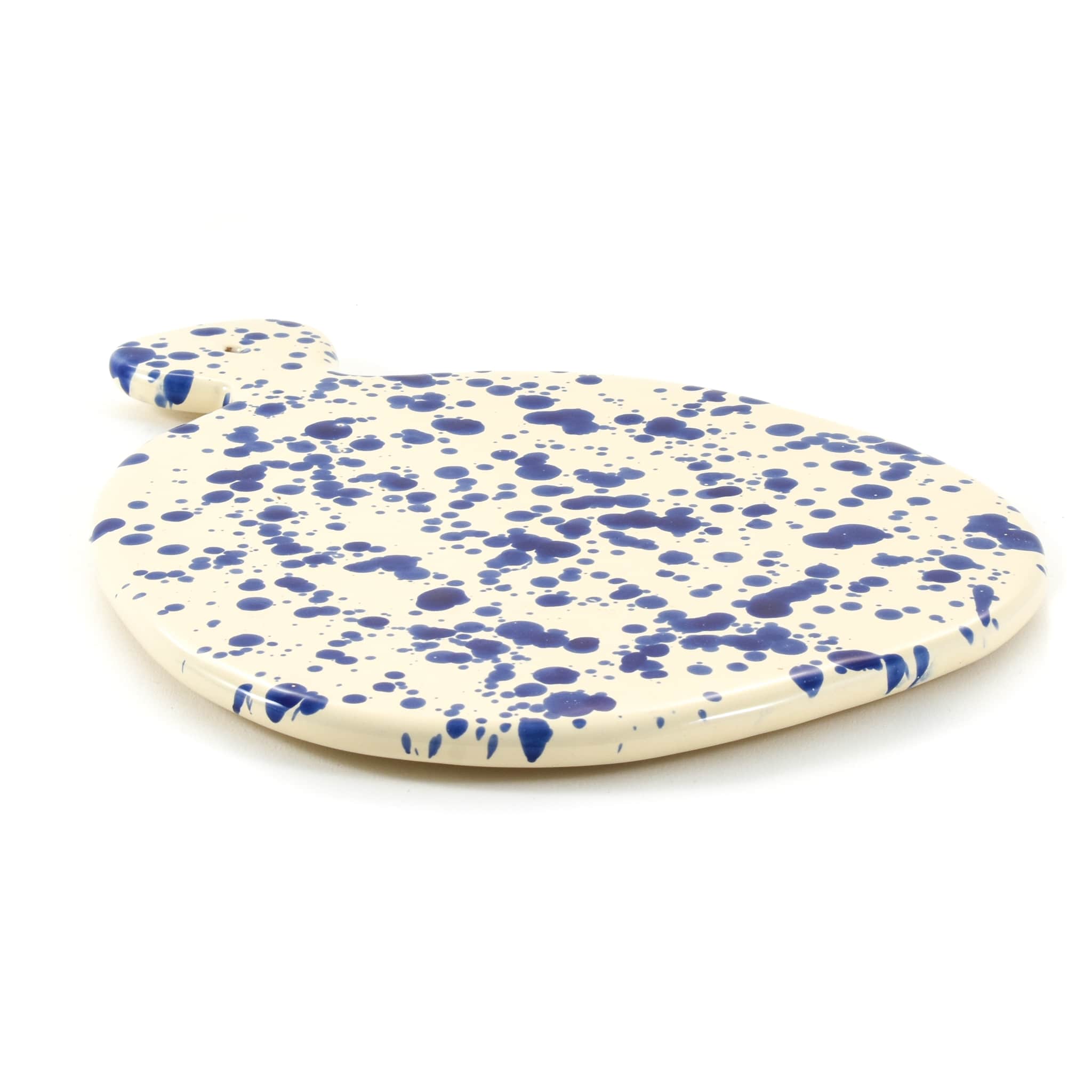 The off-white ceramic platter is decorated with splashes of blue, giving an artist's palette vibe to this piece of crockery.