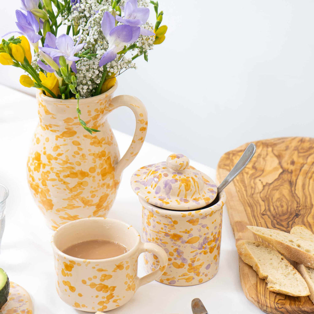 The Puglia dark yellow ceramic pitcher will add a splash of Italian sunshine to your dinner table. With its eye-catching splatter design, it’s sure to be a talking point amongst your guests. Use it to serve sangria, iced tea or a refreshing limoncello spritz.
