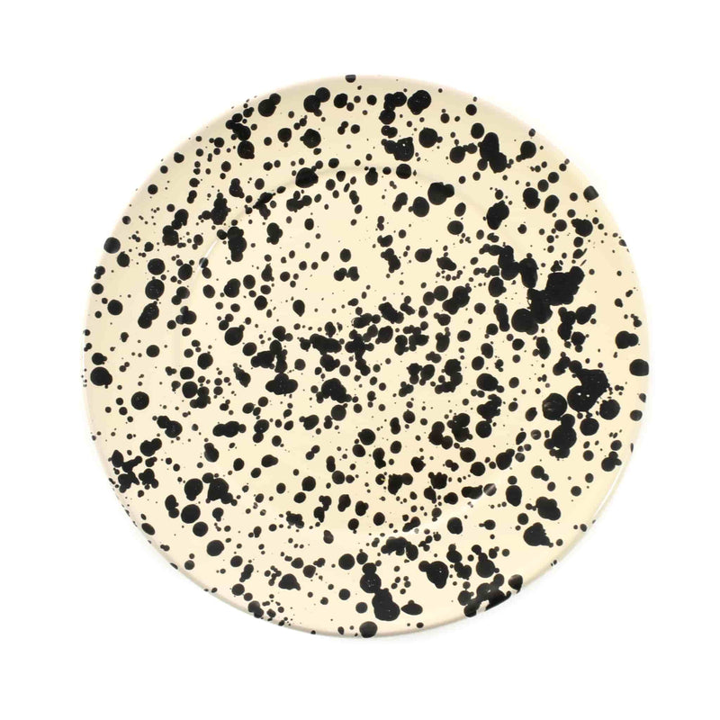 Made in Italy, this modern plate has a black splatter design which contrasts with the cream background. Mix and match with crockery from the Puglia collection for a vibrant Italian table.