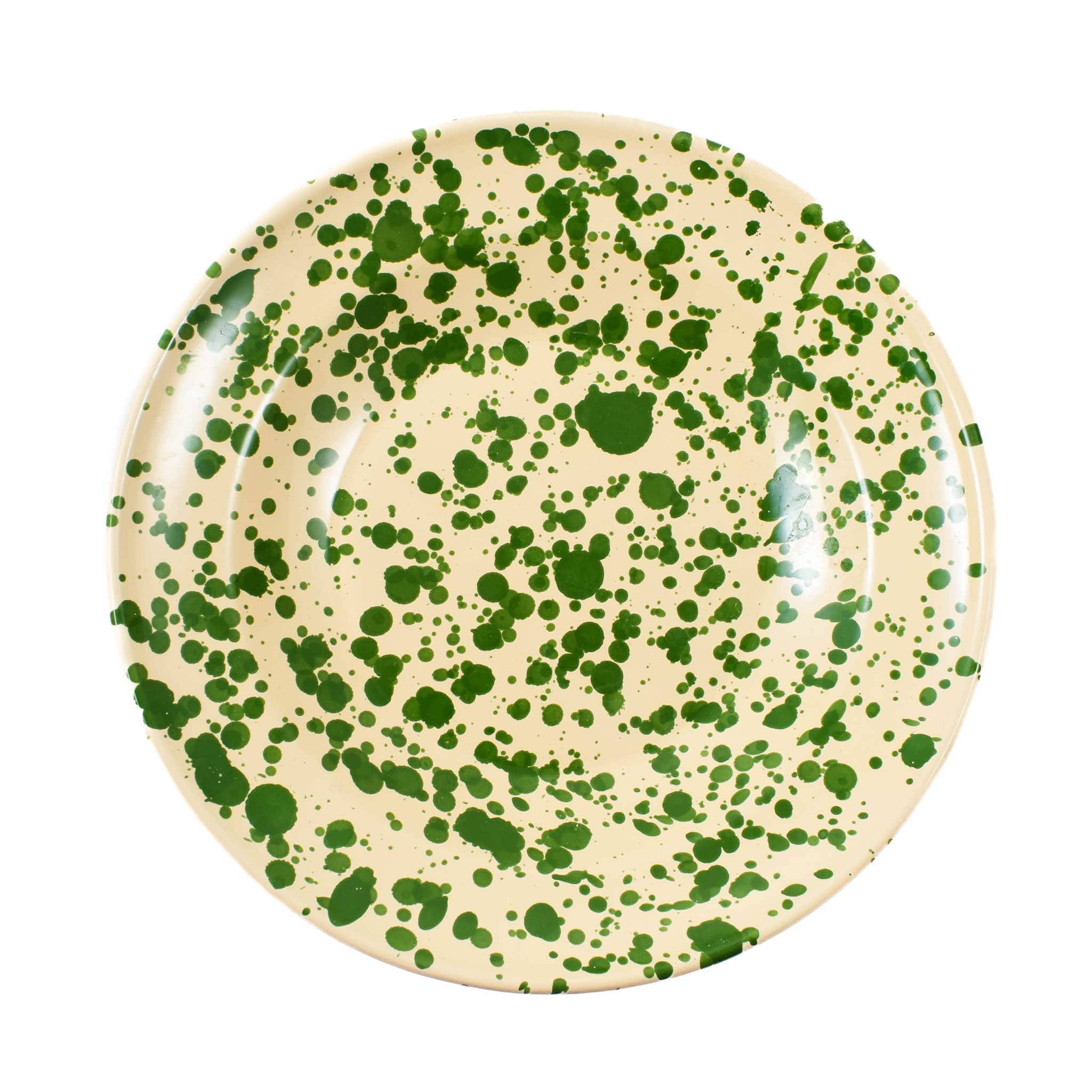 Handmade in Italy, this ceramic pasta bowl features a striking green paint splatter design.