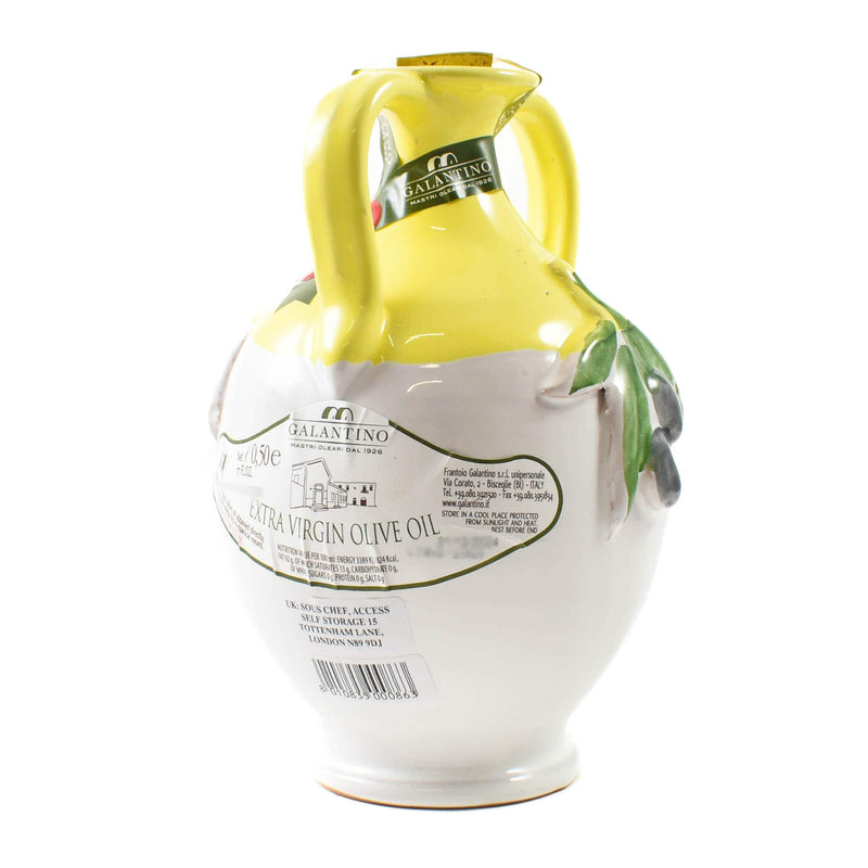 Galantino’s finest Fruttato Medio extra virgin olive oil in a striking yellow terracotta bottle will add a touch of sunshine to your kitchen. Hand-decorated with a red wax seal and presentation ribbon, this classic design also makes a smart gift. Ideal for dipping bread and swirling over soups. Perfect for dressing salads, this stunning bottle will also dress your table.