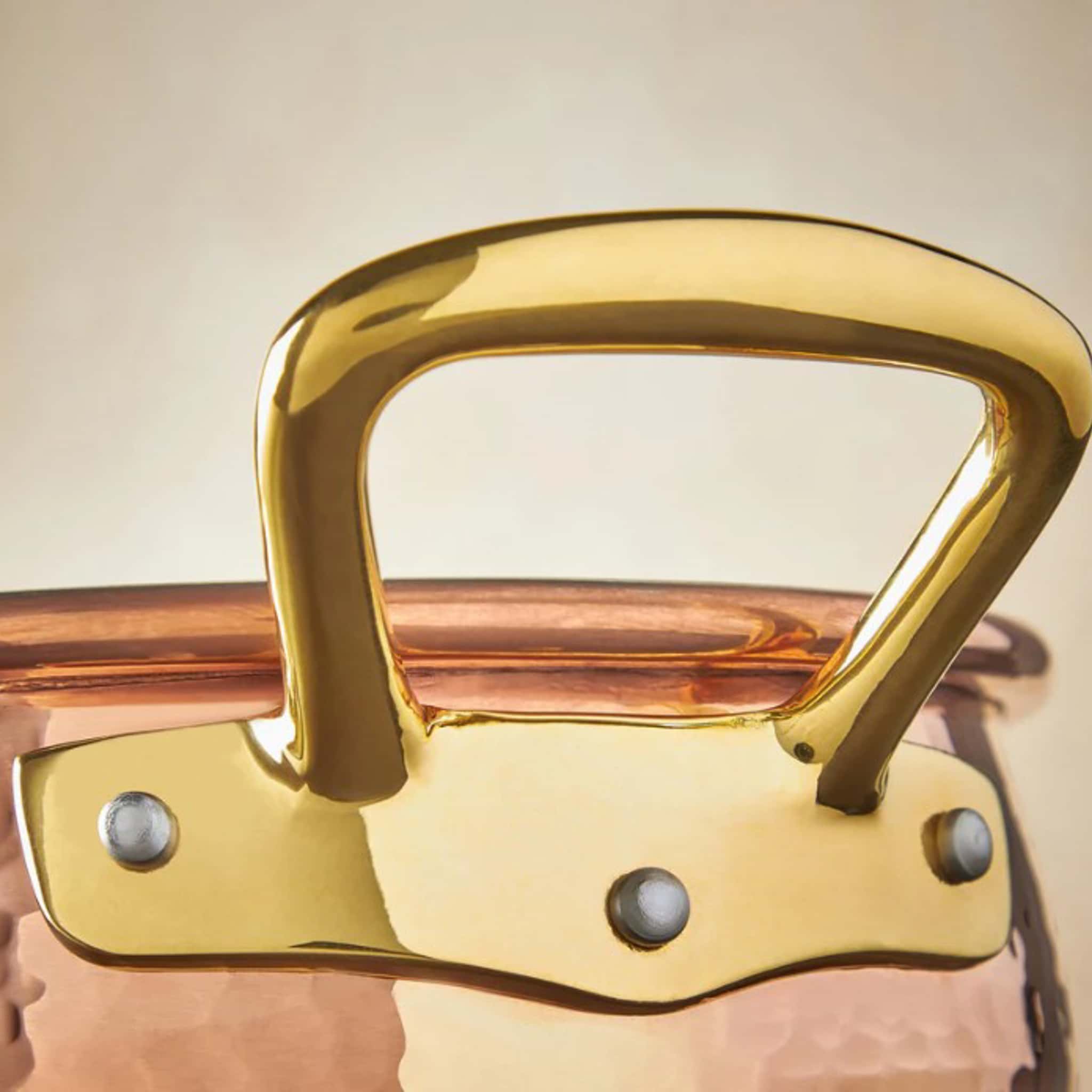 That spirit lives on in every Ruffoni pan. The iconic acorn handles — cast in brass, solid and sculptural — echo the forests around Omegna and have become a hallmark of the brand.